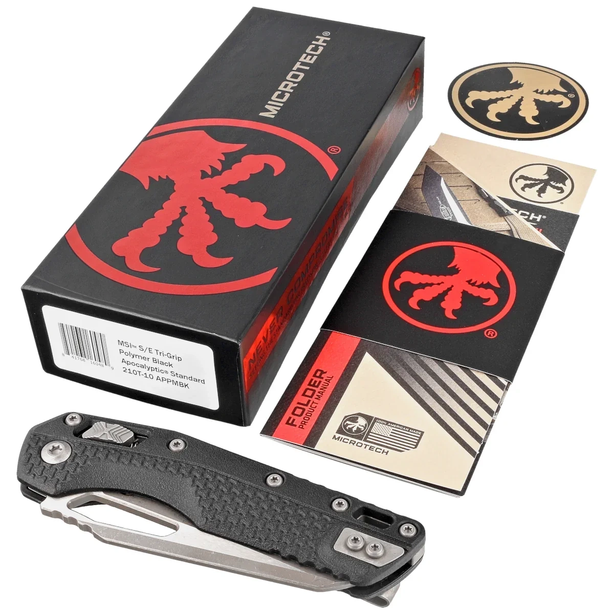 Microtech MSI S/E Ram-Lok Black Tri-Grip Polymer, Apocalyptic M390MK by Tony Marfione (210T-10APPMBK)