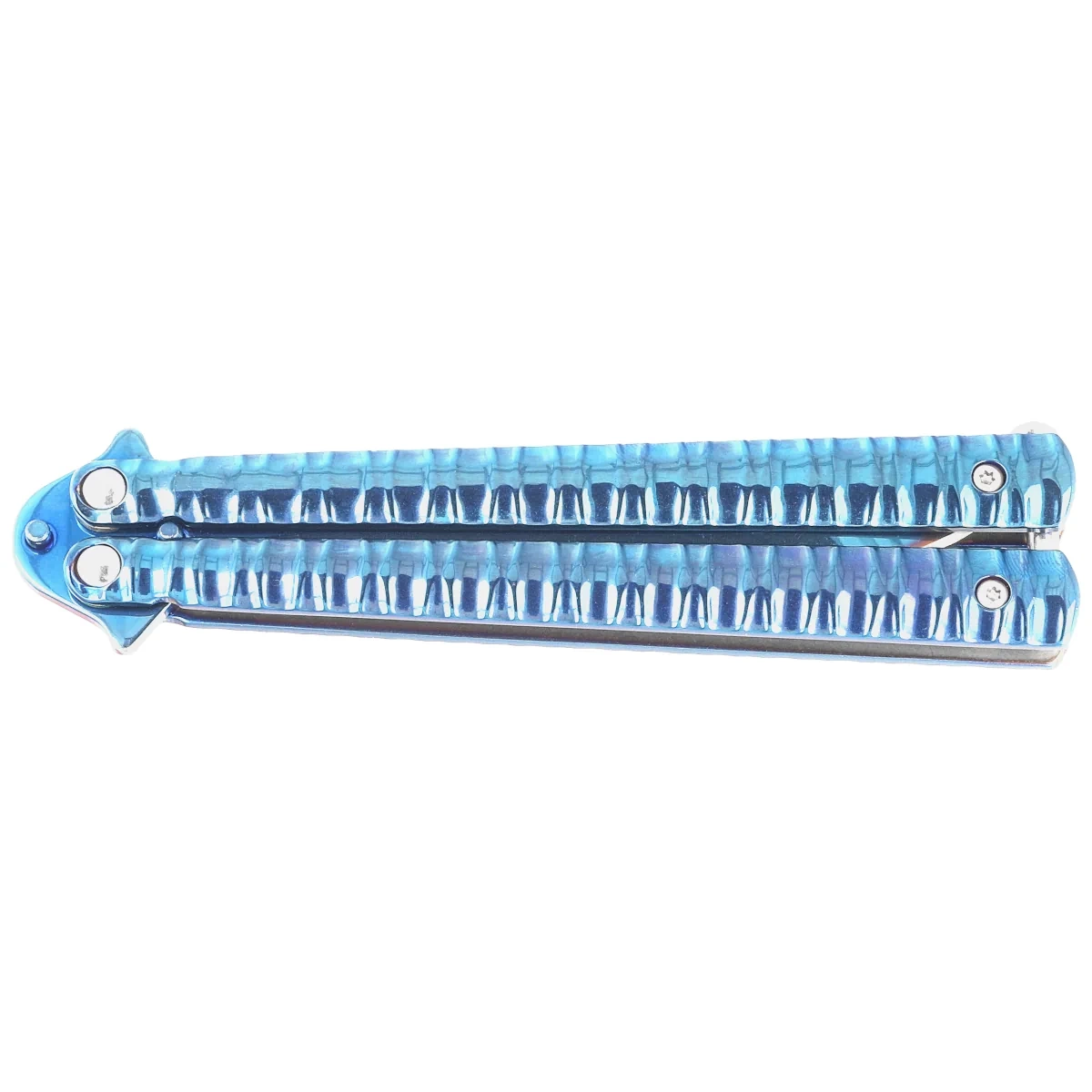 Third Decor Habitat Balisong Blue Titanium Stainles Steel, Blue Titanium Butterfly Knife (16071A)