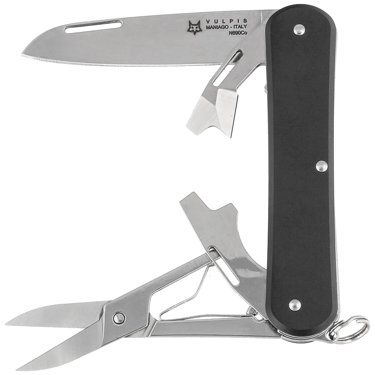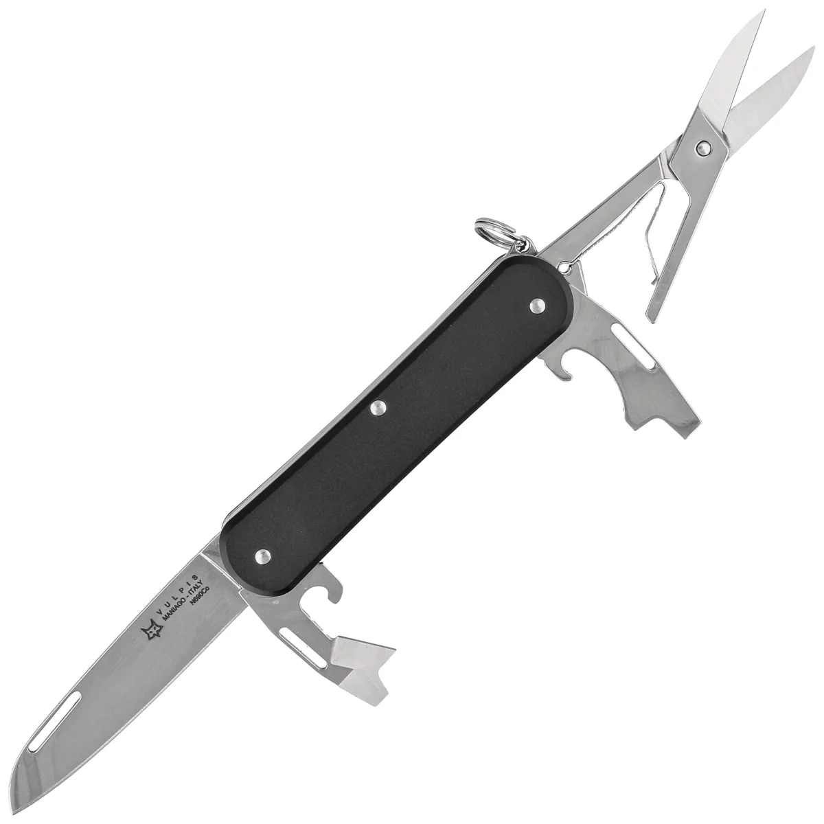 - Vulpis F4 Black Anodized Aluminum, Polished, if you're bored with Swiss design, try Italian elegance! The new Fox Knives Vulpis series wants you to not give up good steel in a new small and versatile multi-tool!