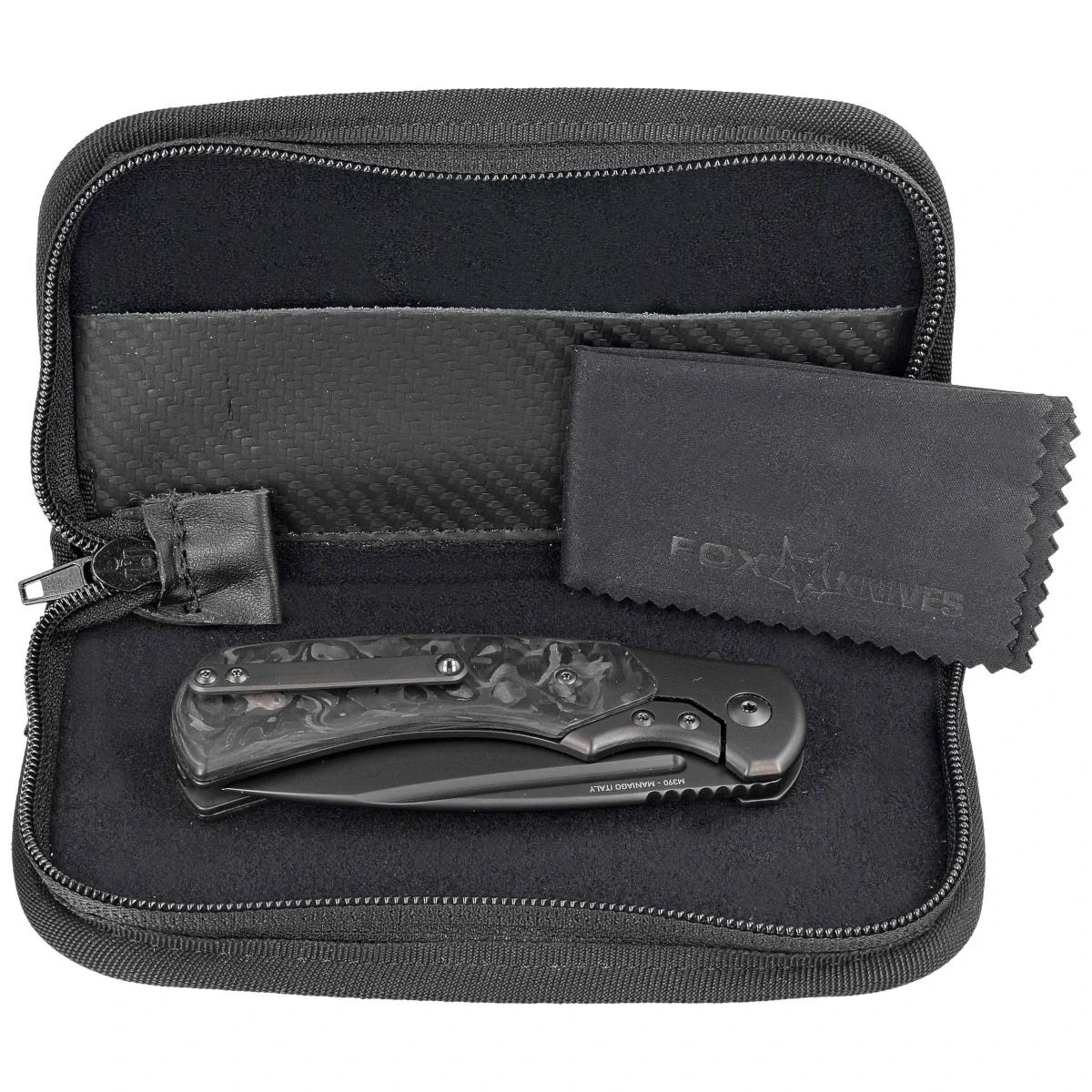 Fox 40th Anniversary Folding Knife Marble Carbon Fiber, Black PVD M390 knife (FX-F2017 R)