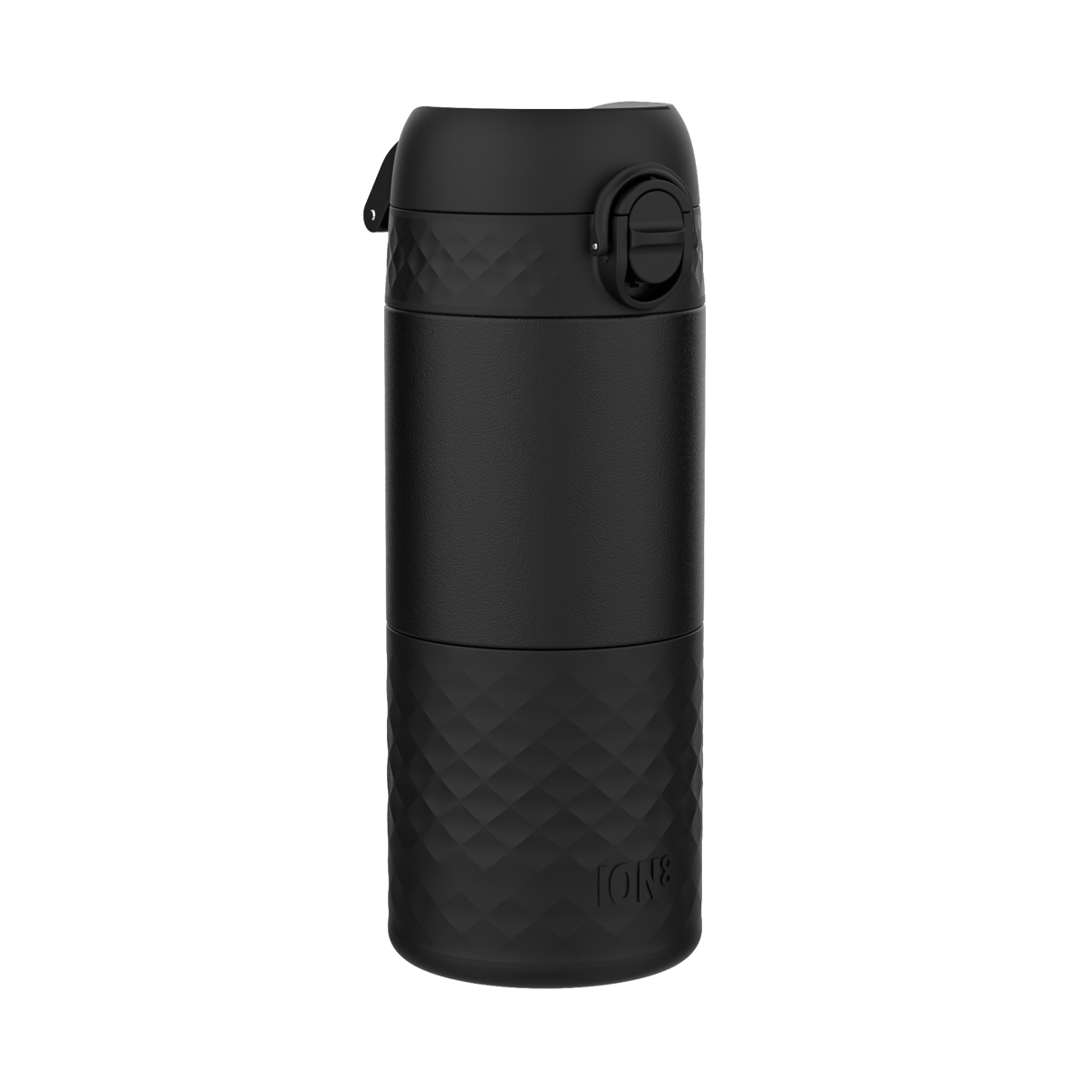 - ION8 Travel Mug Black 360 ml, a lightweight and durable thermal mug for hot and cold beverages, perfect for field trips or bike tours. Operated with one hand, with a lid to protect the mouthpiece from contamination.