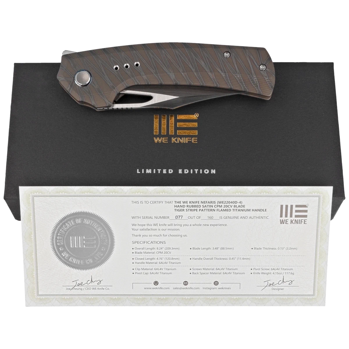 - Nefaris Tiger Stripe Titanium, Hand Rubbed Satin LE. Limited edition WeKnife limited to 160 pieces of elegant EDC knife numbered 077. Perfectly crafted with a solid titanium handle finish and CPM 20CV steel Blade.