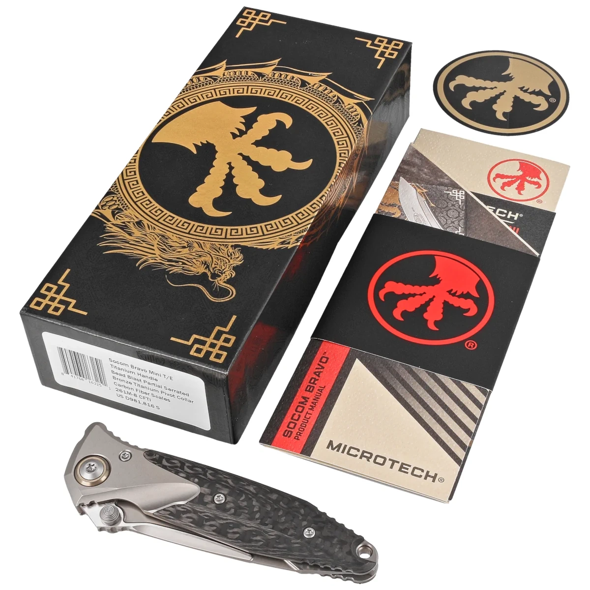 Microtech Socom Bravo Mini T/E Titanium/Carbon Fiber, Bronze HW, Bead Blasted P/S M390 by Tony Marfione (261M-8CFTI)