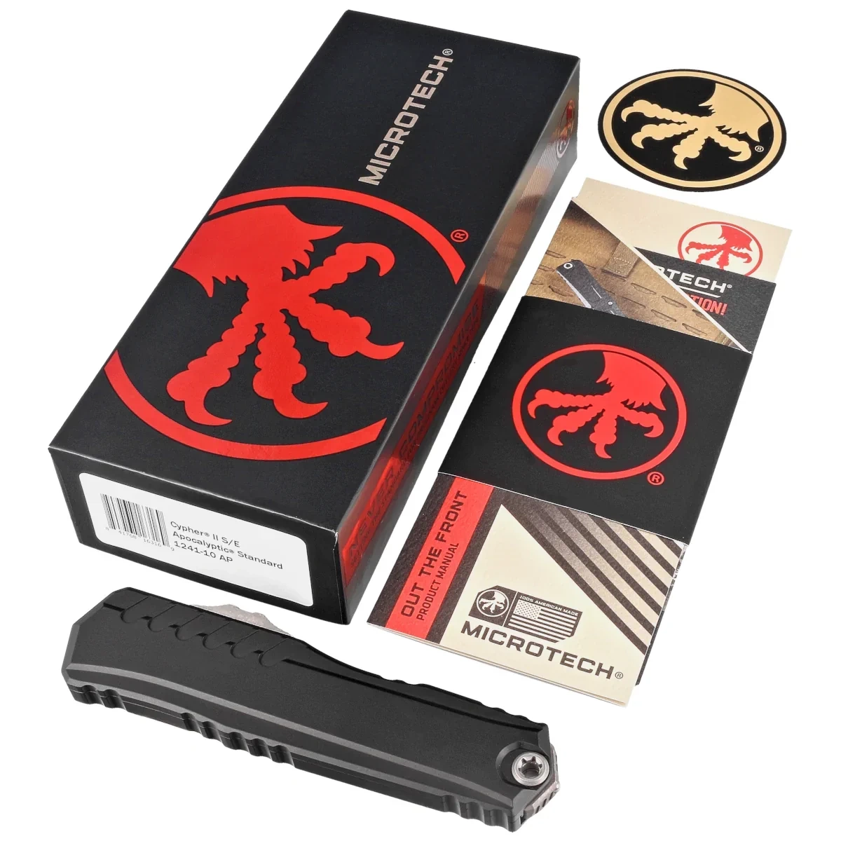 Microtech Cypher II S/E OTF Knife Black Aluminum, Apocalyptic M390MK by Deryk Munroe and Tony Marfione (1241-10AP)