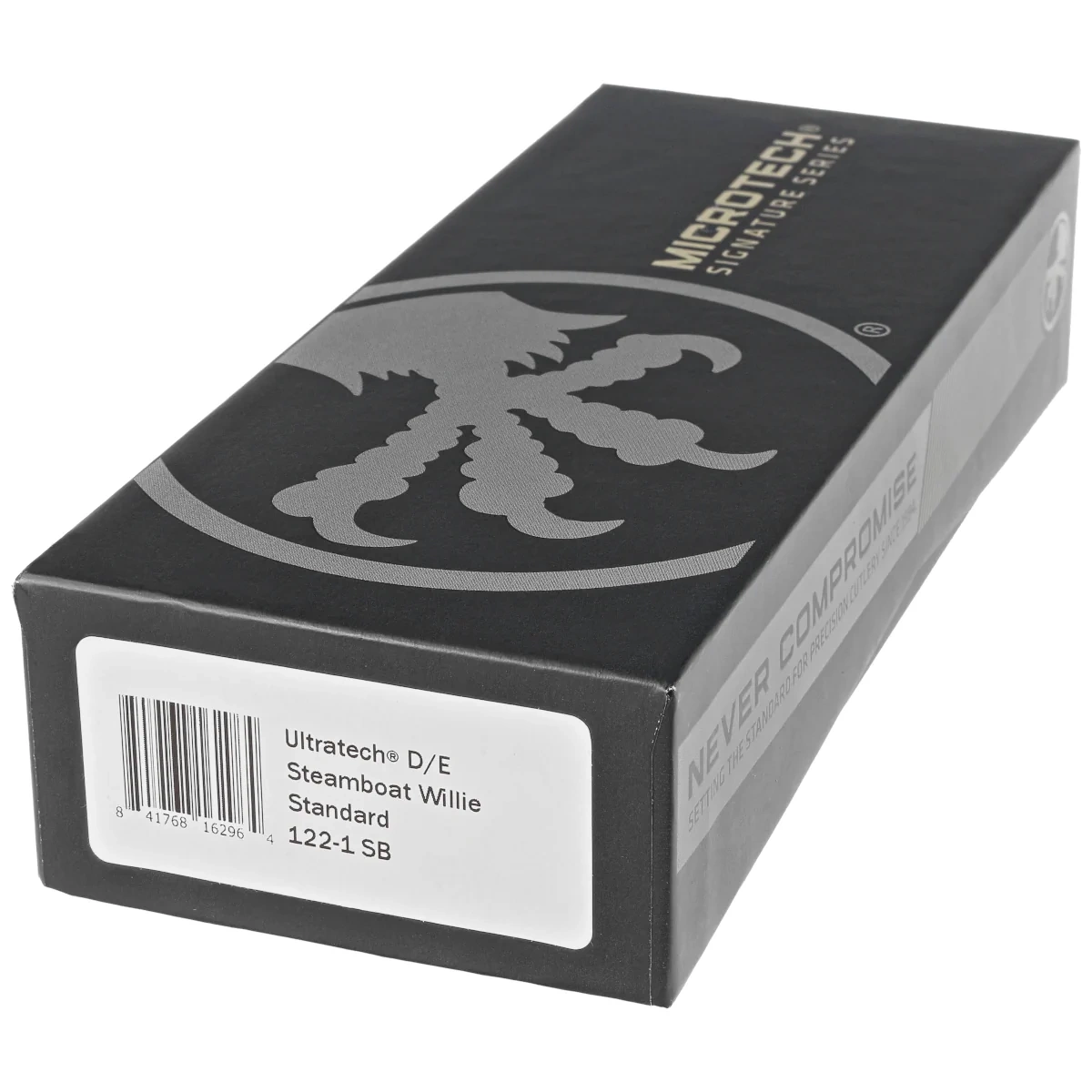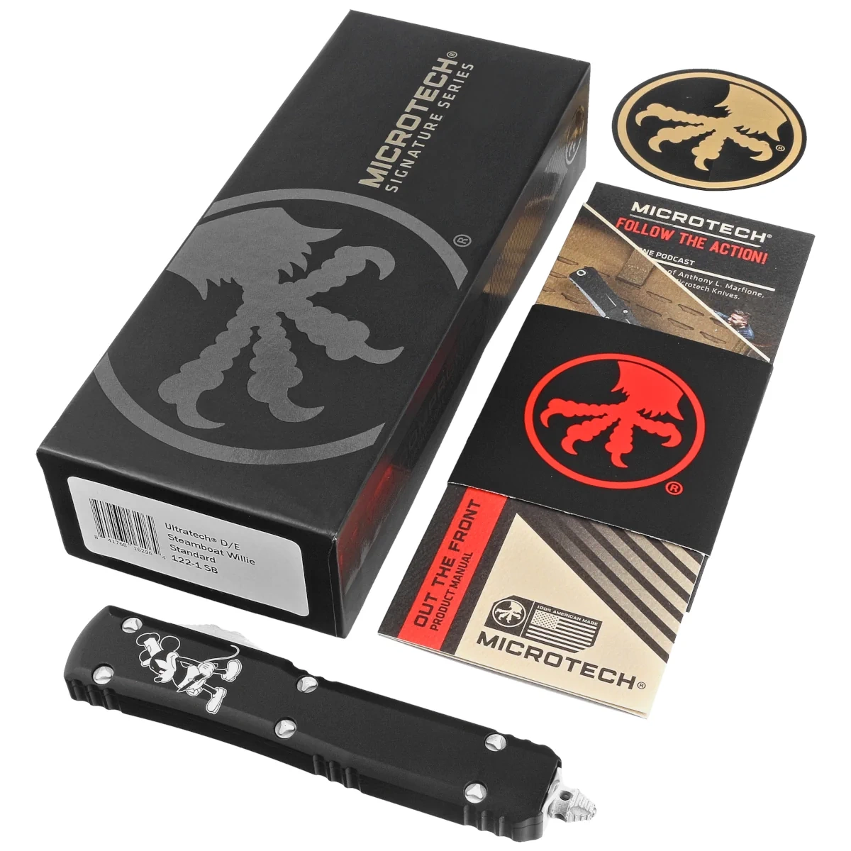 - Ultratech D/E Steamboat Willie Signature Black Aluminum, Antique White full-size OTF automatic knife from the Ultratech Signature Series. Black and white convention, decorated with the iconic Mickey Mouse engraving, earning it the name "Steamboat Willie".