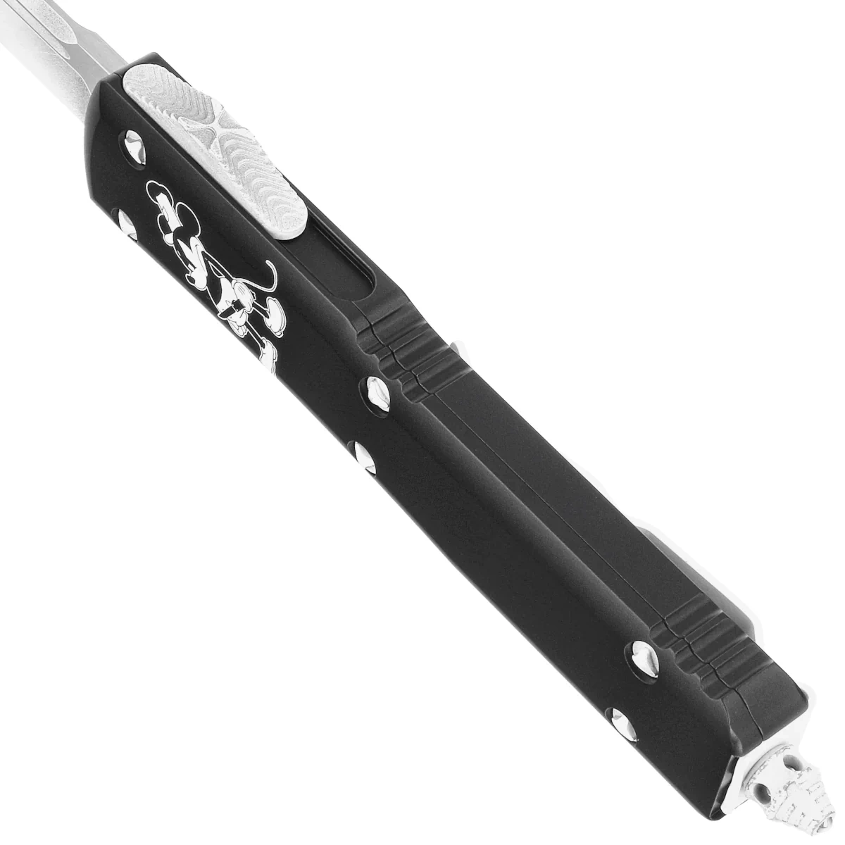 Microtech Ultratech S/E Steamboat Willie Signature OTF Knife Black Aluminum, Antique White M390 by Tony Marfione (121-1SB)