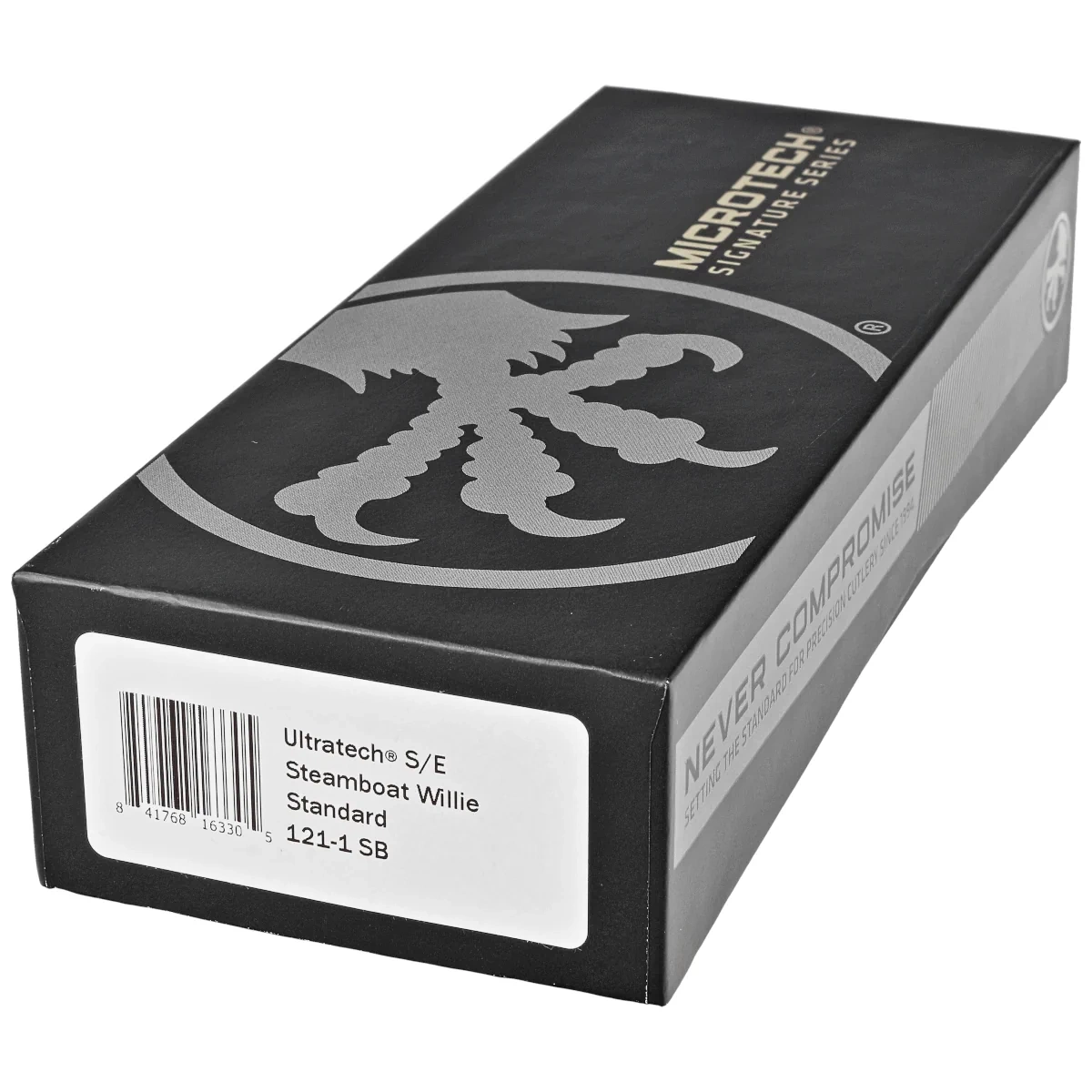 - Ultratech S/E Steamboat Willie Signature Black Aluminum, Antique White is a full-sized OTF knife from Ultratech Signature Series. Featuring a black and white design, it is adorned with iconic Mickey Mouse engravings, earning it the name "Steamboat Willie"