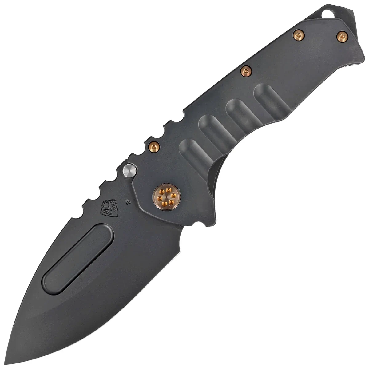 Name: Praetorian T Drop Point, Black DLC Titanium Handle, Bronze HW/Clip, PVD Breaker, Black DLC