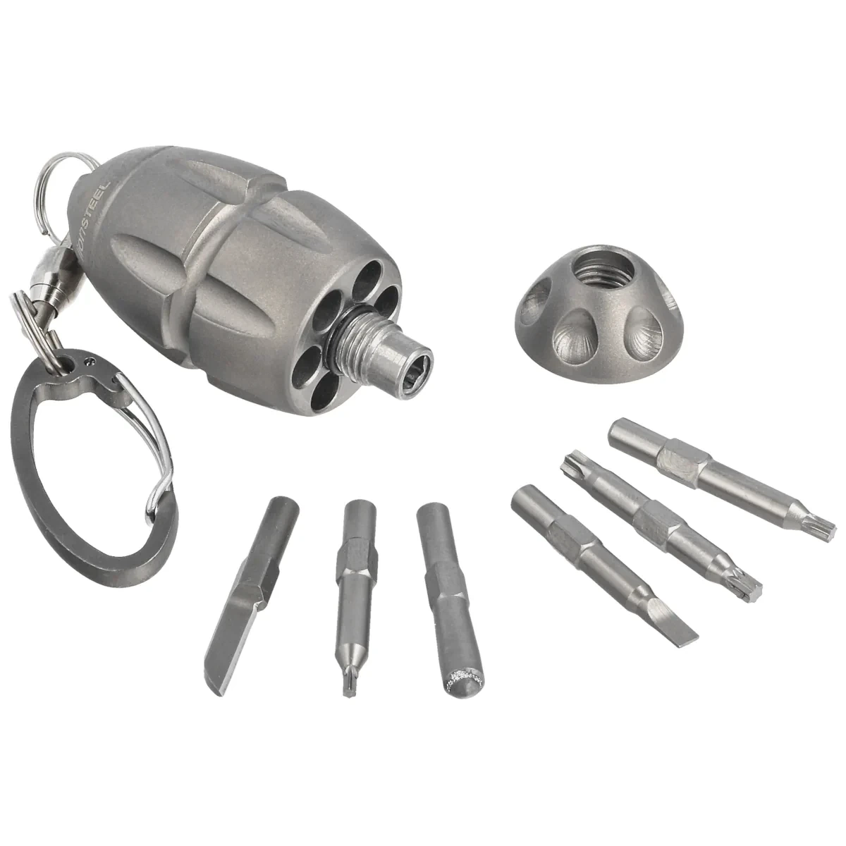 - Eggie Grey Titanium, in its titanium interior conceals 6 bits with 7 tools and a holder with a magnet. A convenient snap hook makes it easy to attach the key ring to your keys. The sleek microtool was designed by Ruslan Sarychev for LionSteel.