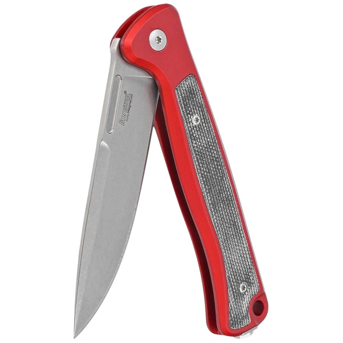 • Skinny Red Aluminium/Black Canvas Micarta, Stonewash folder from Italian manufactory LionSteel designed by Michele "Mollletta" Pensato with Solid technology and a MagnaCut steel blade. Winner of the Imported Knife of The Year 2024 award at the Blade Show