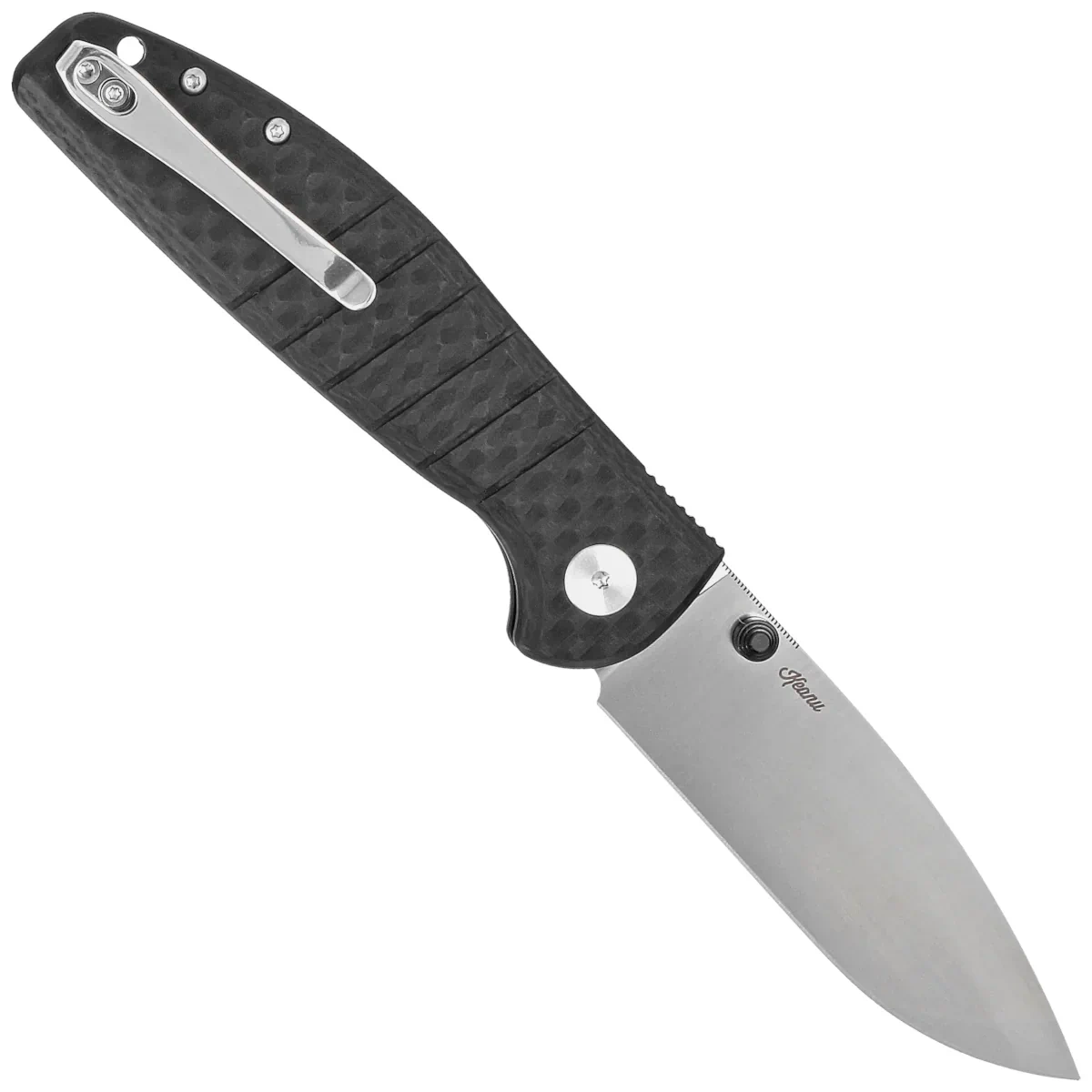 Handle - made of G10, a composite fiberglass material compressed with synthetic resin. The aggressive texture of the grips provides a firm grip, even with wet hands. The cover's chamfered edges eliminate sharp edges for comfort, and the finger indentation made on the front improves ergonomics. The open-backed design fixed with steel spacer sleeves reduces weight and makes cleaning easier. A two-position right/left deep carry clip allows you to carry the knife discreetly in your pocket in tip-up position (blade tip up).