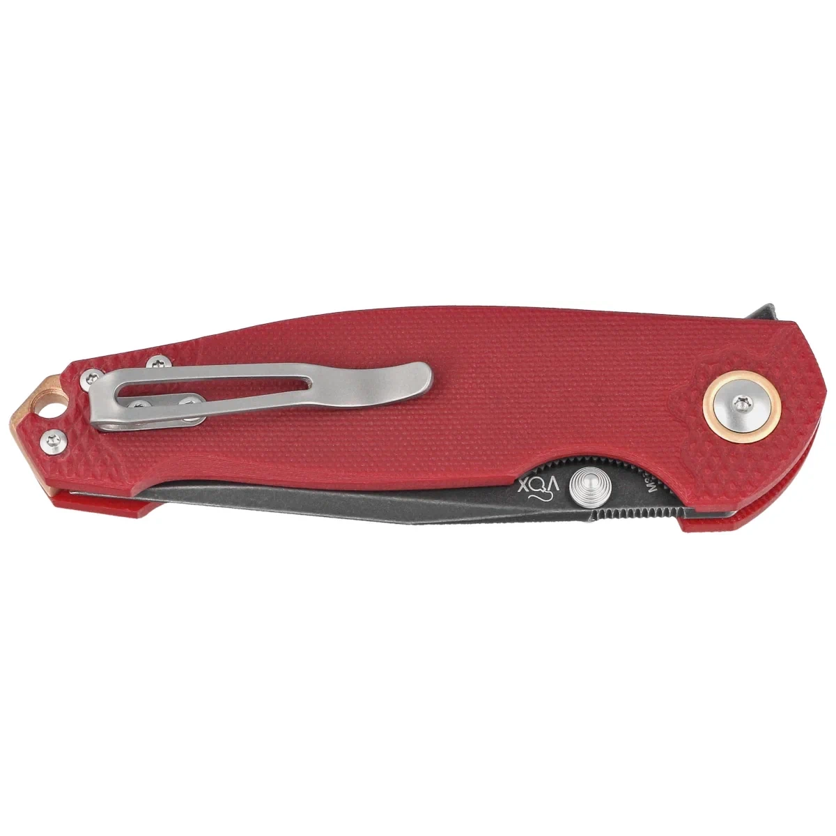 Katla LE No 080/150 Red G10, Dark Stonewashed limited to 150 pieces edition of an excellent folding knife. A knife that is the result of a combination of excellent materials and masterful design. It is the work of Jesper Voxnaes and Jens Anso, well-known Danish knife designers whose works always stand out in terms of ergonomics and style. This particular model is unique in many ways. Handle grips are made of G10 composite milled with a 3D pattern, the blade, made of high-quality Böhler M390 steel, hardened to a hardness of 59-61HRC, which provides excellent cutting properties. The blade can be opened in two different ways. A deep clip makes it easy to carry and ensures safety. All this makes this knife an ideal choice for people who appreciate both style and functionality. All this makes this knife not only a practical tool, but also an elegant accessory that will enhance the individual style of each user. Whether you are a knife collector or simply appreciate high quality and functionality, this knife is sure to meet your expectations.