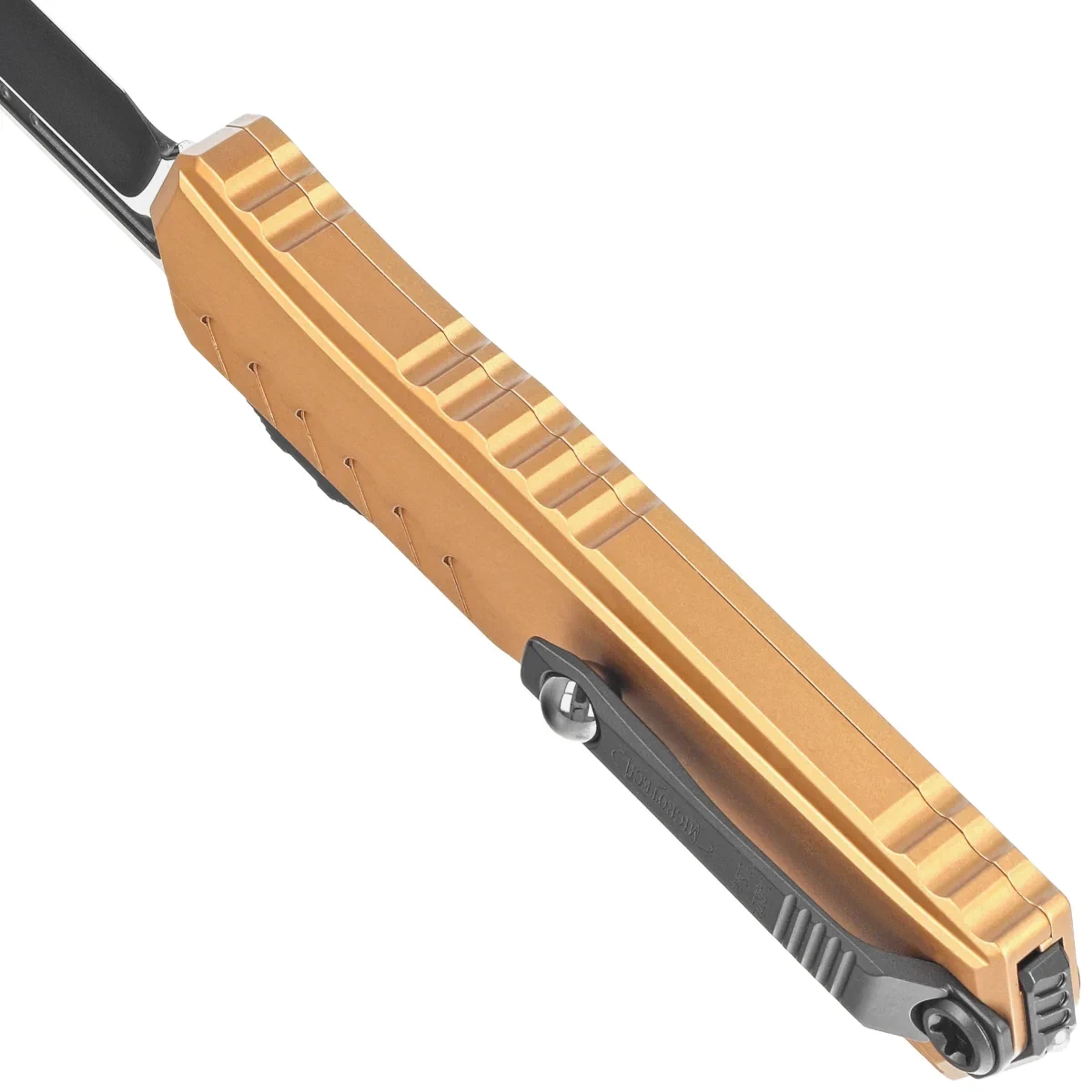 Microtech Cypher II S/E OTF Knife Tan Aluminum, Black M390MK by Deryk Munroe and Tony Marfione (1241-1TA)