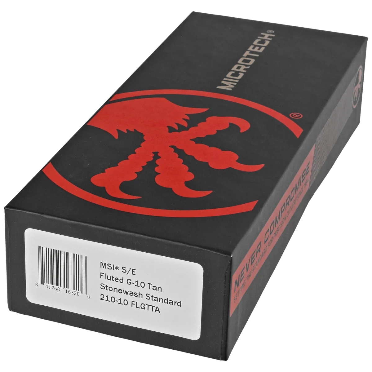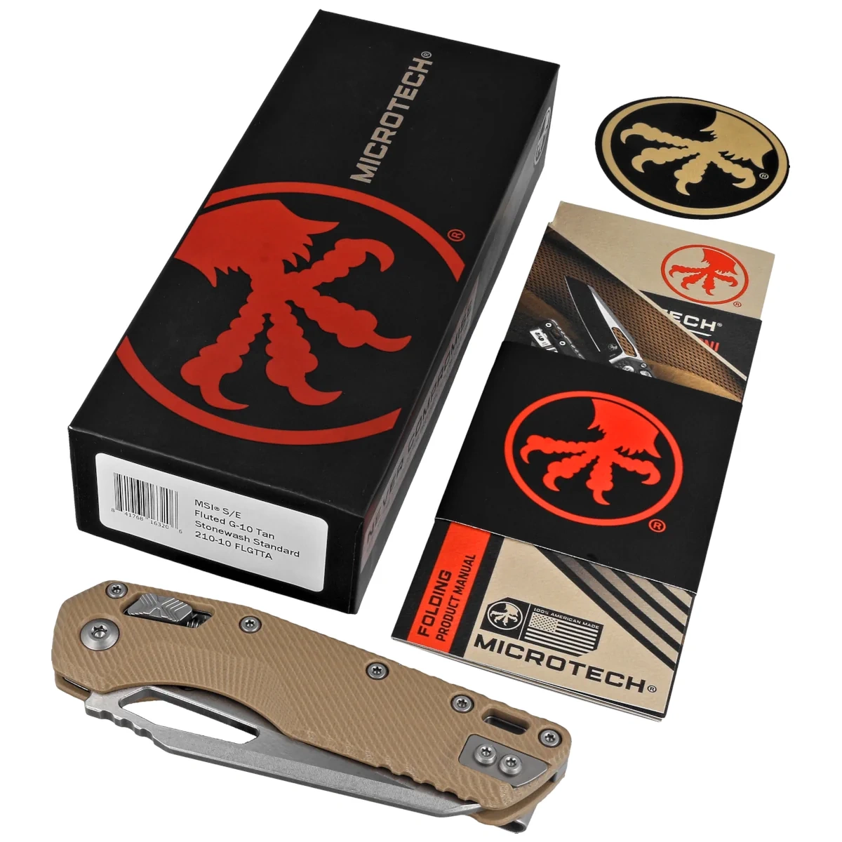 - MSI S/E Fluted Tan G10, Stonewashed strong folding knife with intuitive RAM-Lock. Superior M390MK blade steel, the result of collaboration between Microtech and Bohler engineers. Ergonomic G10 handle. Designed by Anthony Marfione of Microtech!