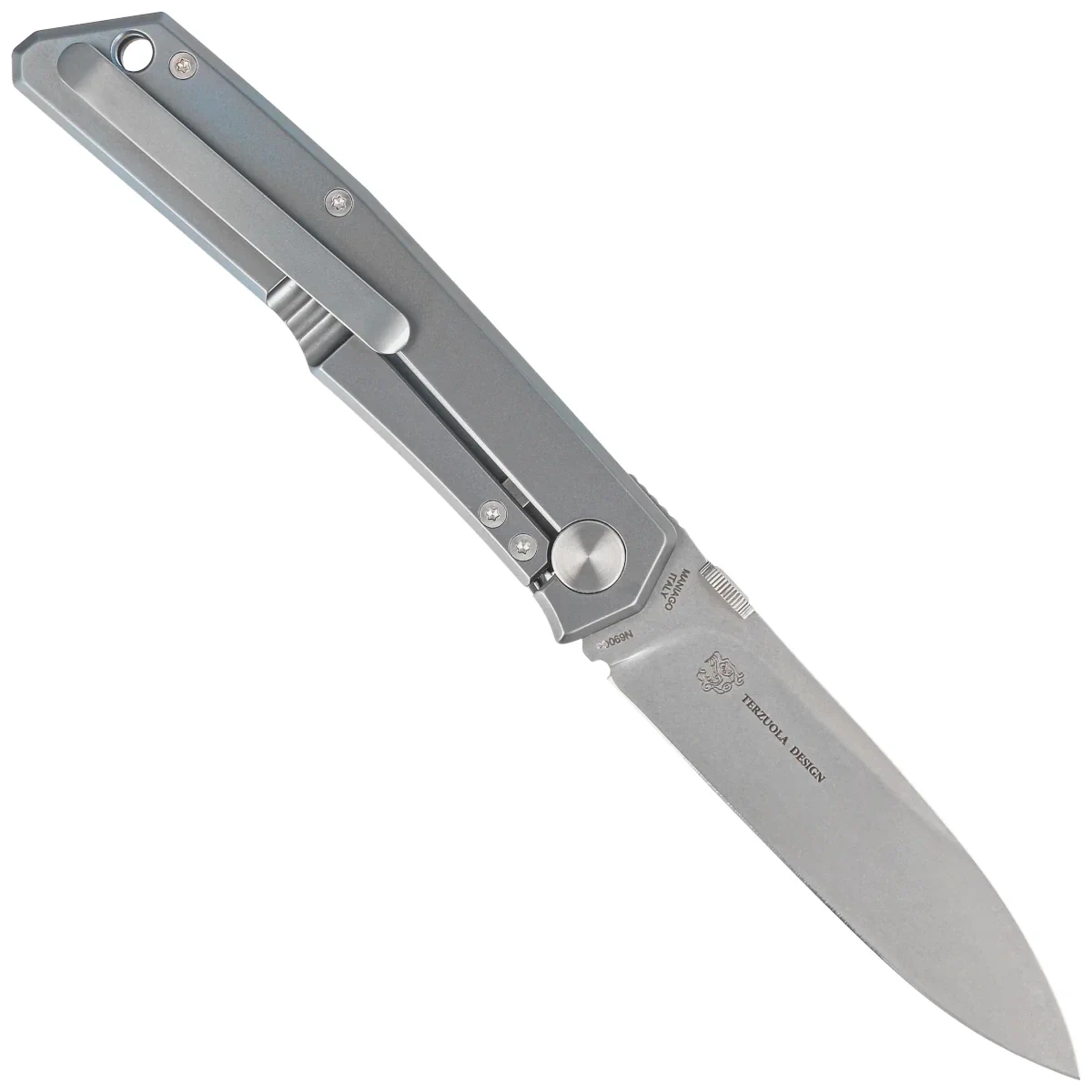 • The Sicilian Blue Titanium, Stonewashed, a slim gentleman's folder designed by the legend of world knifemaking, Bob Terzuola. Simple lines, high utility, very good materials. Plus the superb workmanship of the craftsmen at Maniago!