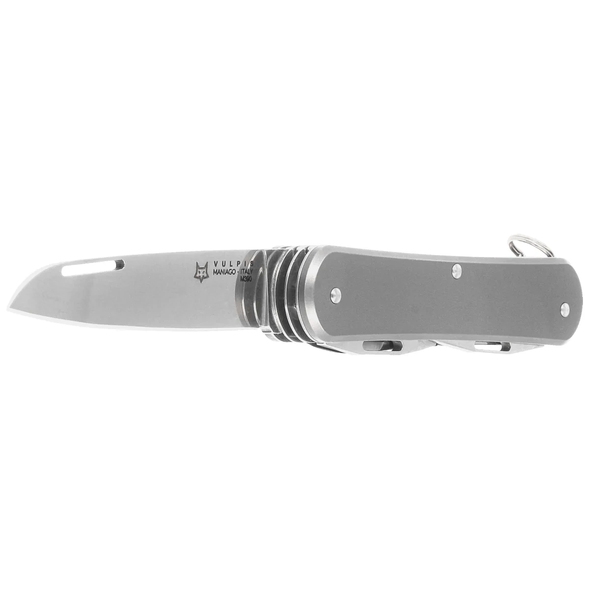 • Vulpis F4 Titanium, Polished, if you're bored with Swiss design, try Italian elegance! The new Fox Knives Vulpis series wants you to not give up good steel in a new small and versatile multi-tool!