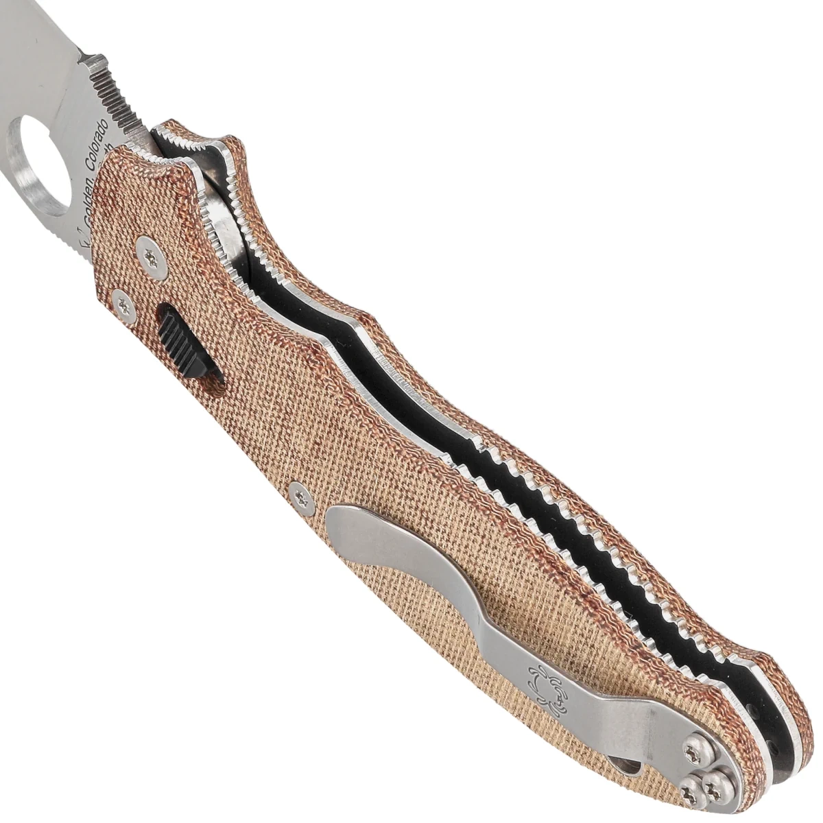 Spyderco Manix 2 Brown Canvas Micarta, Satin CPM Cru-Wear by Eric Glesser (C101MPCW2)