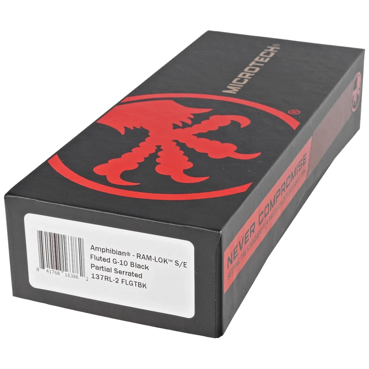 - Amphibian Ram-Lok P/S Fluted Black G10, Black reissue of folding knife with intuitive RAM-Lock. Superior M390MK blade steel, the result of collaboration between Microtech and Bohler engineers. Ergonomic Handle. Designed by Anthony Marfione of Microtech!