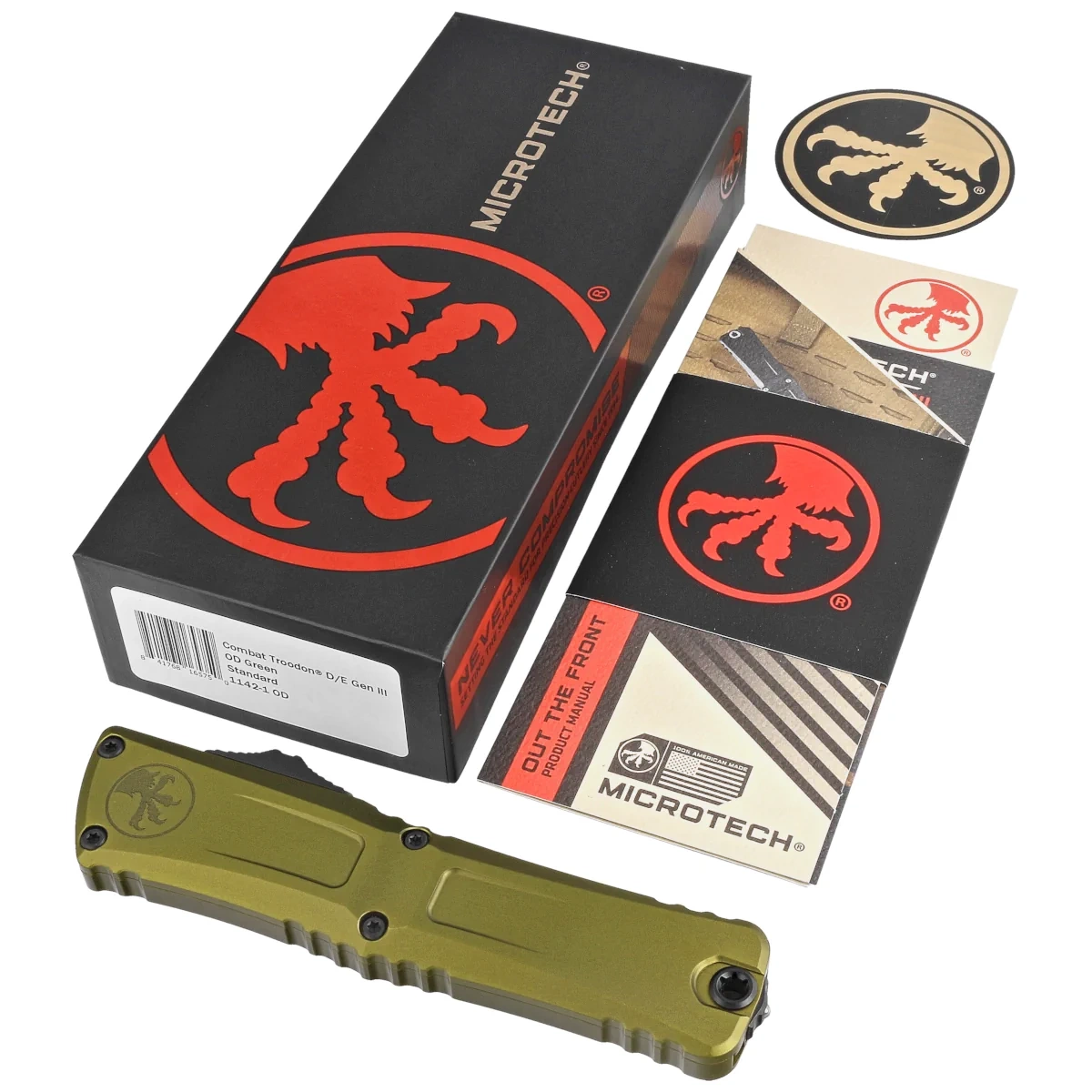Microtech Combat Troodon Gen III D/E OTF Knife OD Green Aluminum, Black M390MK by Tony Marfione (1142-1OD)