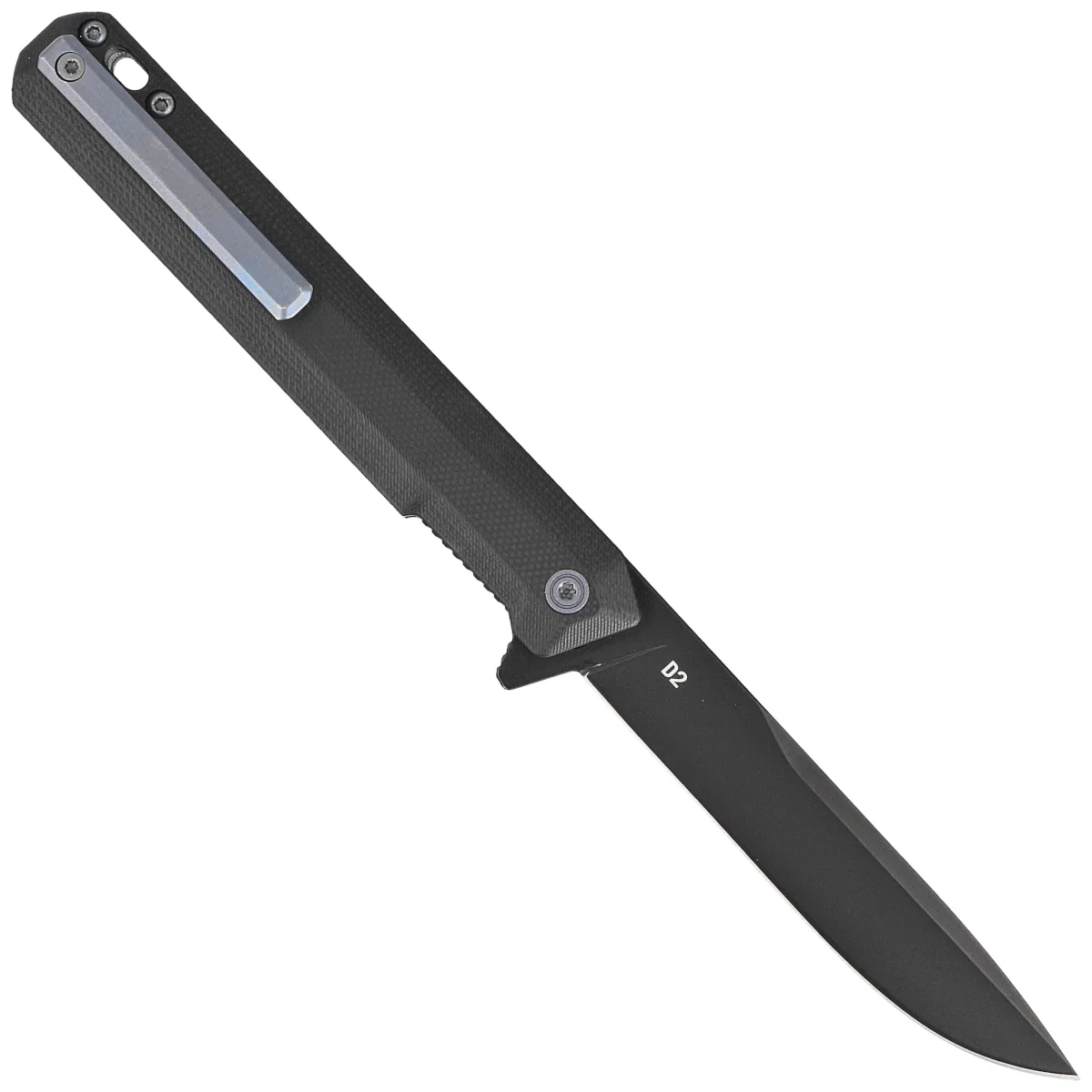 - F2 Bravo Black G10, Blue HW/Clip, Black compact folding knife from Tekto Knives. Utilitarian D2 tool steel blade, solid G10 composite grips. Lightweight and durable, you can carry it comfortably in the included pouch. It will stand up to any challenge!