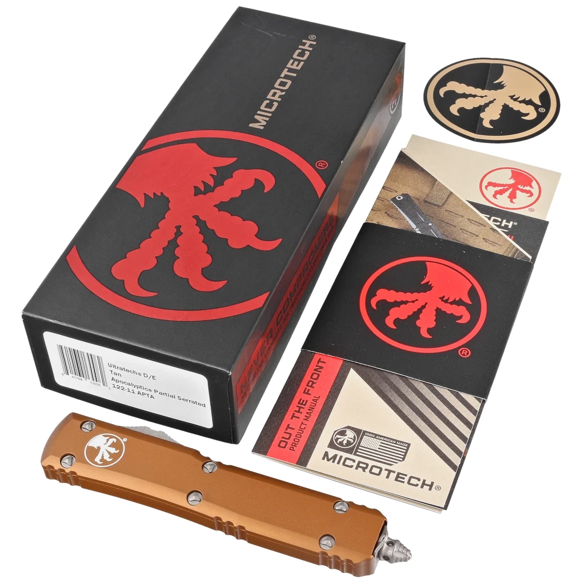 - Ultratech D/E Tan Aluminum, Apocalyptic P/S is a full-size OTF automatic knife from Ultratech. Operating in D/A mode, it features a hell of a fast blade extension mechanism. Designed by Tony Marfione owner of Microtech Knives