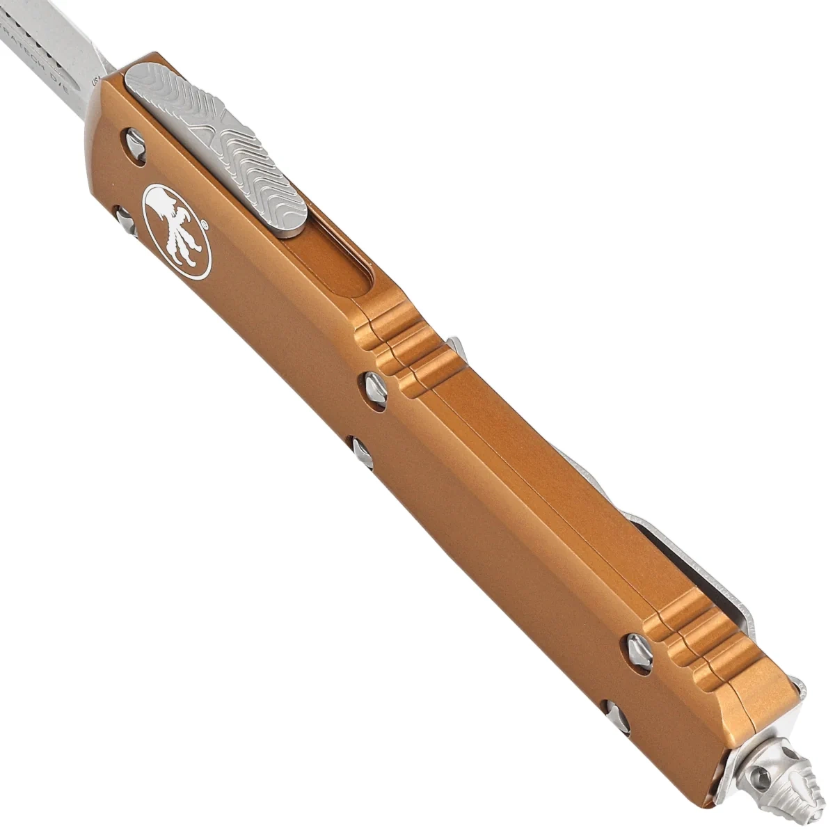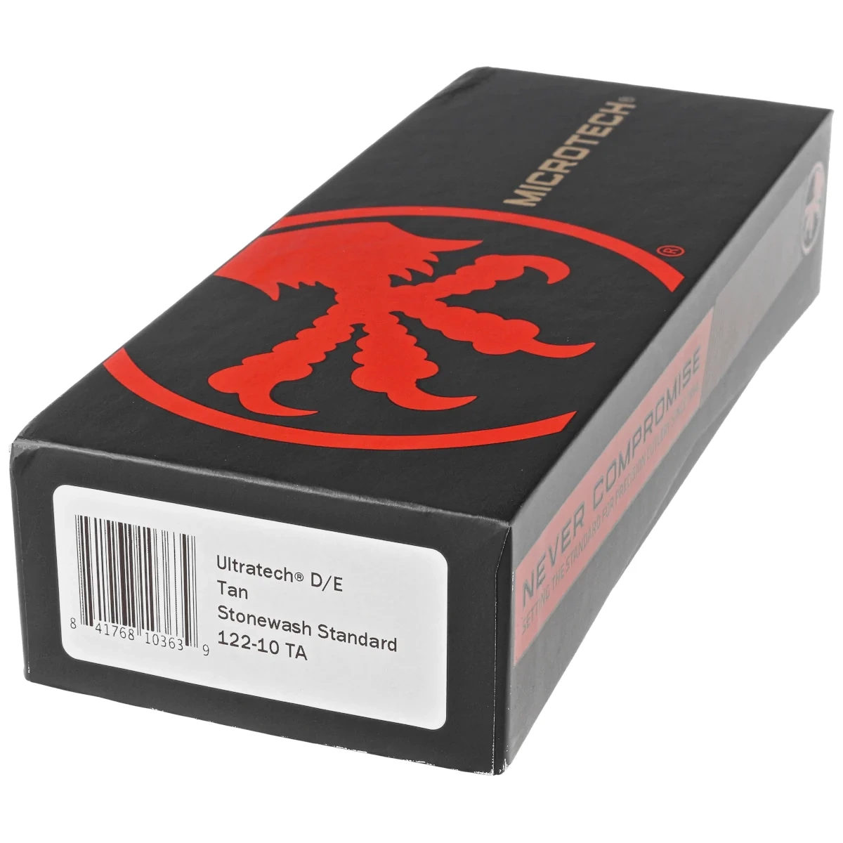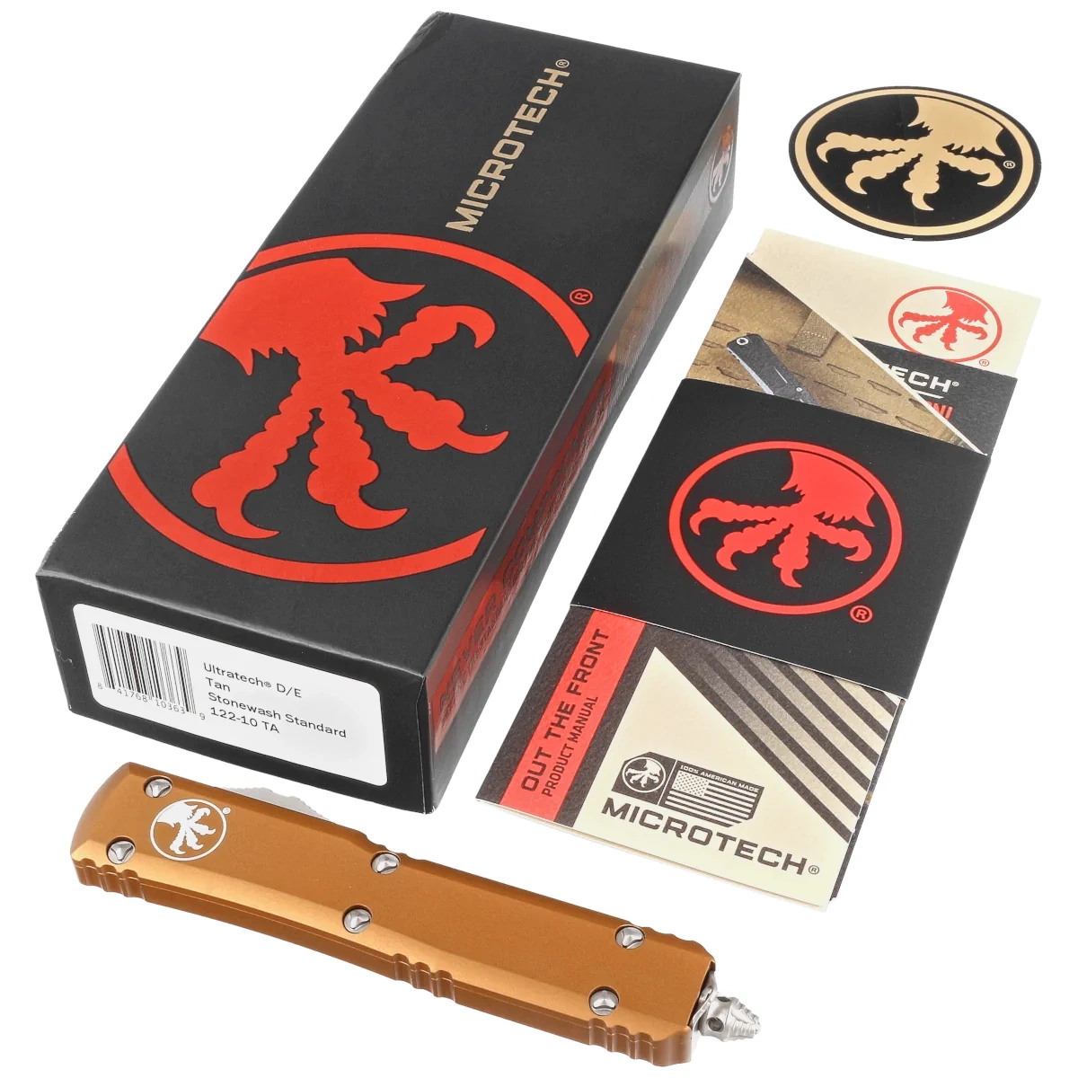 - Ultratech D/E Tan Aluminum, Stonewashed is a full-size OTF automatic knife from Ultratech. Operating in D/A mode, it features a hell of a fast blade extension mechanism. Designed by Tony Marfione owner of Microtech Knives