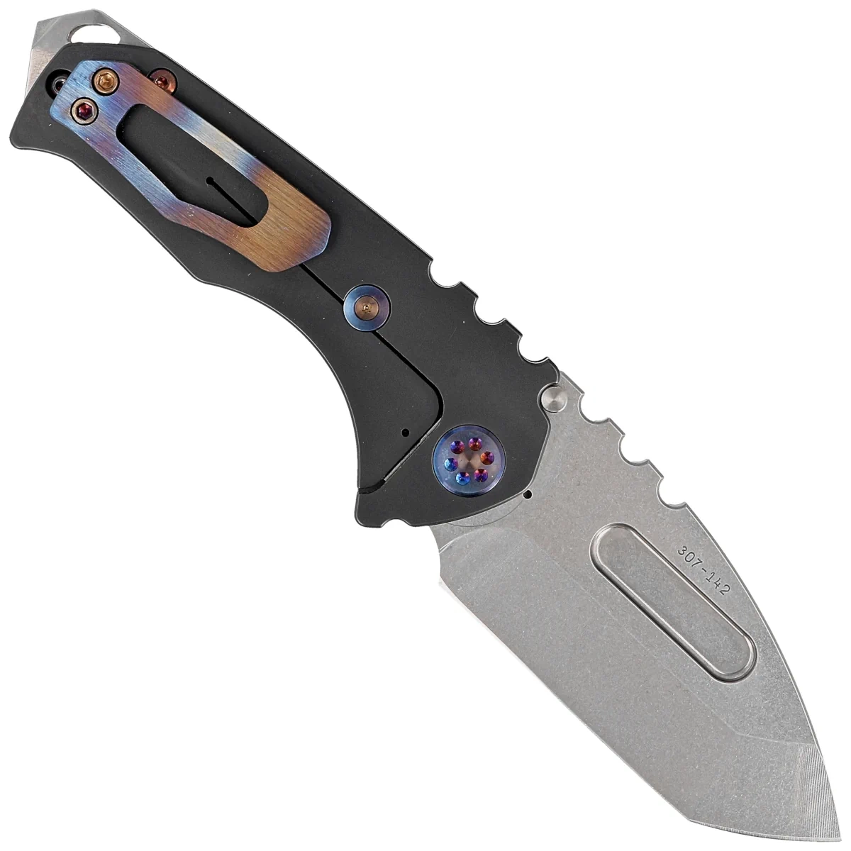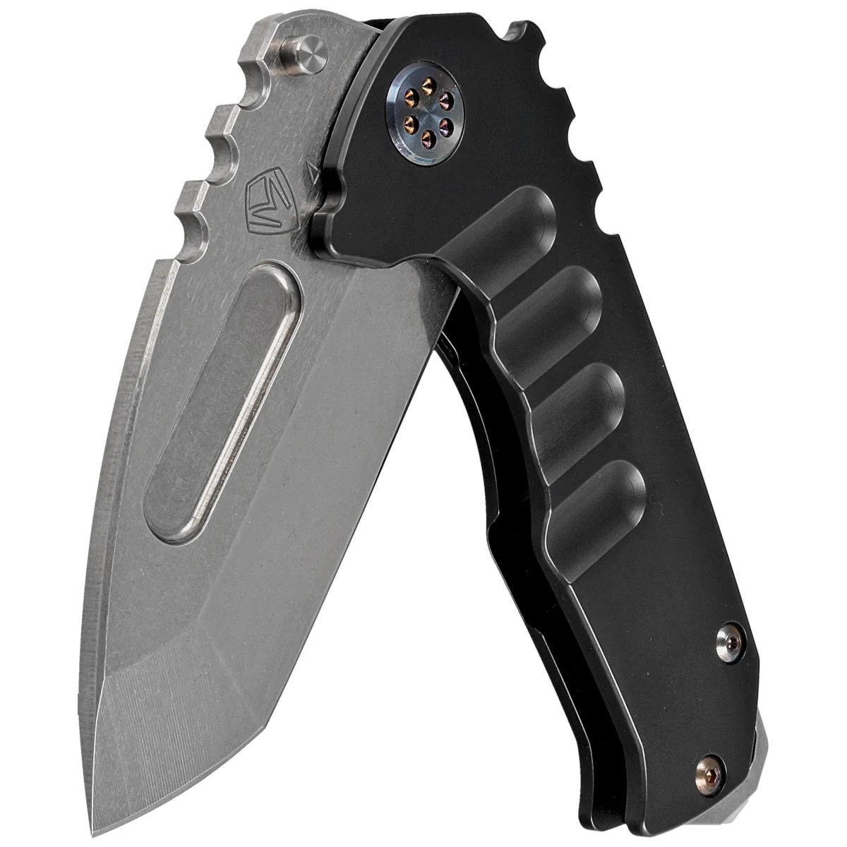 The elite Imperial Praetorian Guard was a unit into which the best of the Roman legionaries were selected to serve as the Emperor's personal protection. The MKT Praetorian Genesis T Tanto, Black DLC Titanium, Flamed HW/Clip, NP3 Breaker, Tumbled is just such an elite knife. Its amazing design is limited only by the strength of its materials. The 4.8mm thick blade, solid 3.2mm thick titanium grips and 6.35mm thick pivots and bolts make it stand out from other knives. The hollow grind on the blade has been crafted by hand - a rarity in the knife industry, achieved by only a select few manufacturers capable of executing such precision. Beautiful form and function, unrivaled reliability, this is a knife for enthusiasts who do not recognize compromise and demand the highest standards!