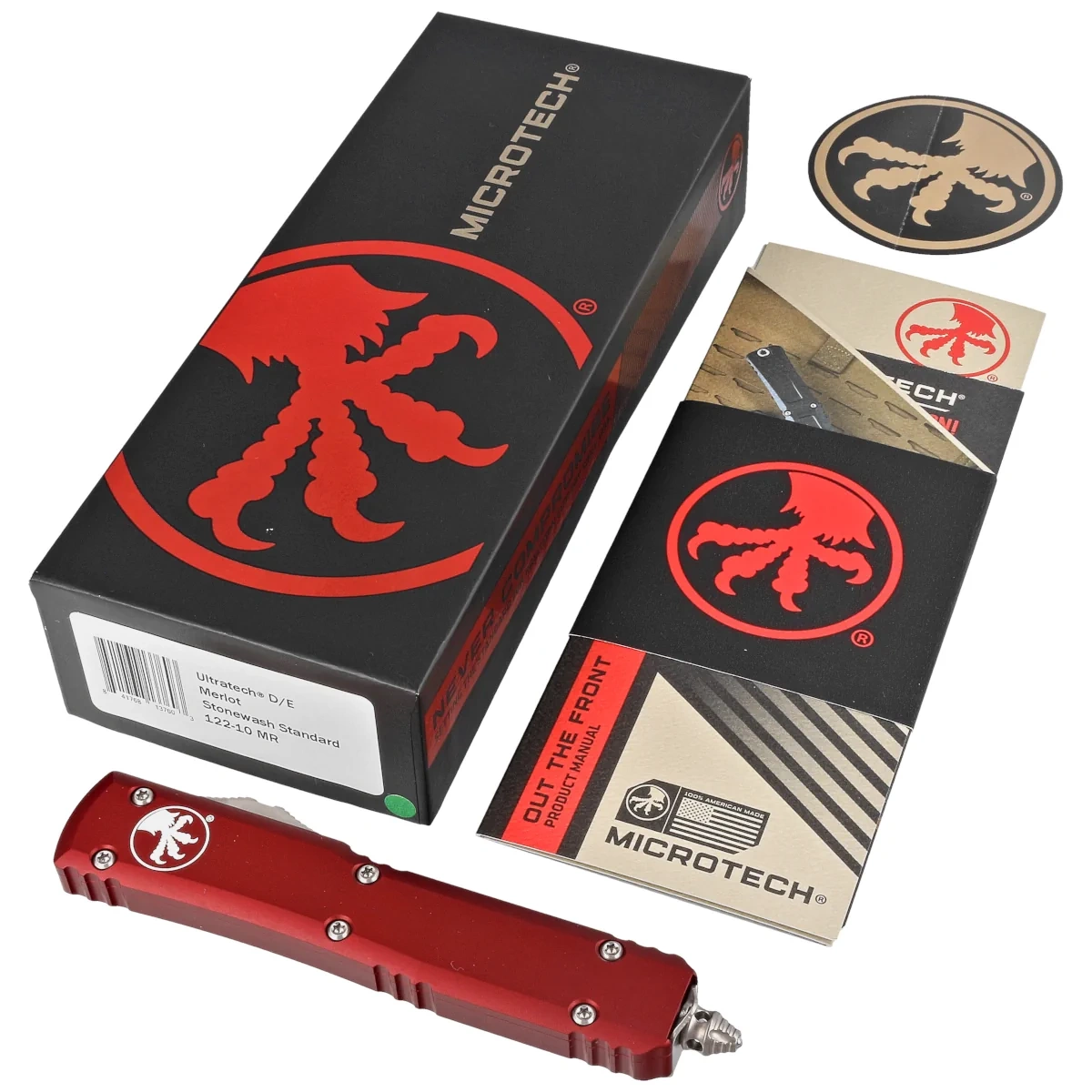 - Ultratech D/E Merlot Red Aluminum, Stonewashed is a full-size OTF automatic knife from Ultratech. Operating in D/A mode, Blade made of Böhler M390 steel, precision machined aluminum Handle. Designed by Tony Marfione owner of Microtech Knives