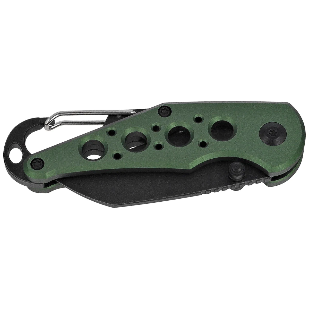 - Pragma Green Aluminum, Black Stonewashed, compact EDC folding knife, equipped with a snap hook for easy carrying. It also serves as a bottle opener. Blade made of Nitro-V steel, ergonomic aluminum handle.