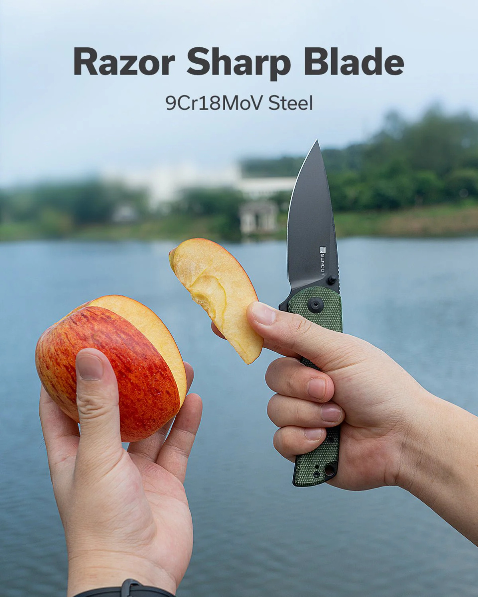 Sencut Praktisk Green Canvas Micarta, Black 9Cr18MoV (S24019-3)