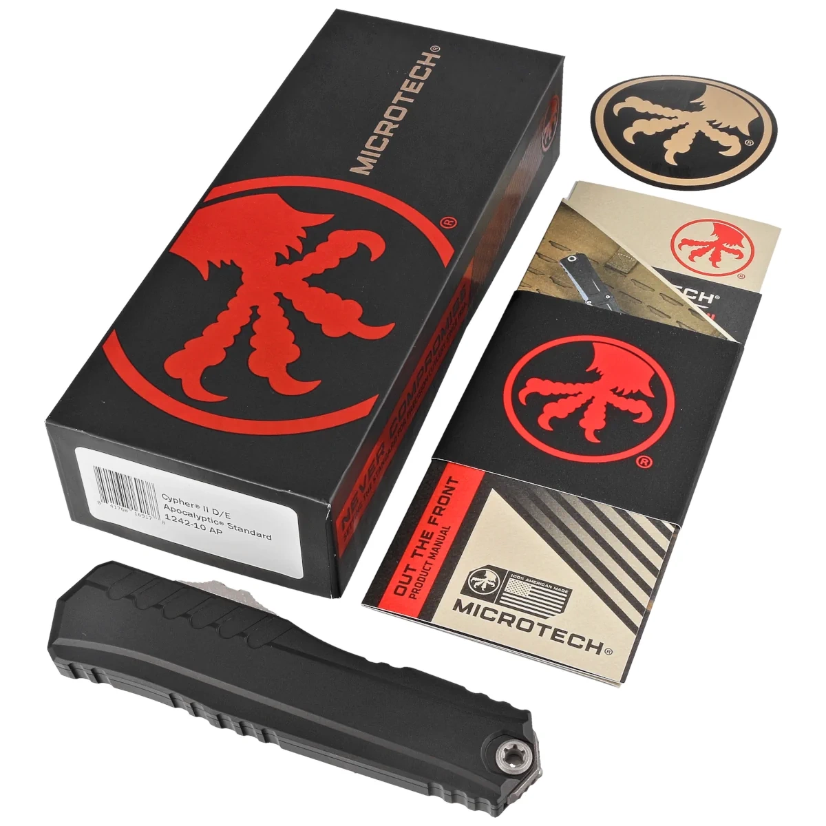 Microtech Cypher II D/E OTF Knife Black Aluminum, Apocalyptic M390MK by Deryk Munroe and Tony Marfione (1242-10AP)