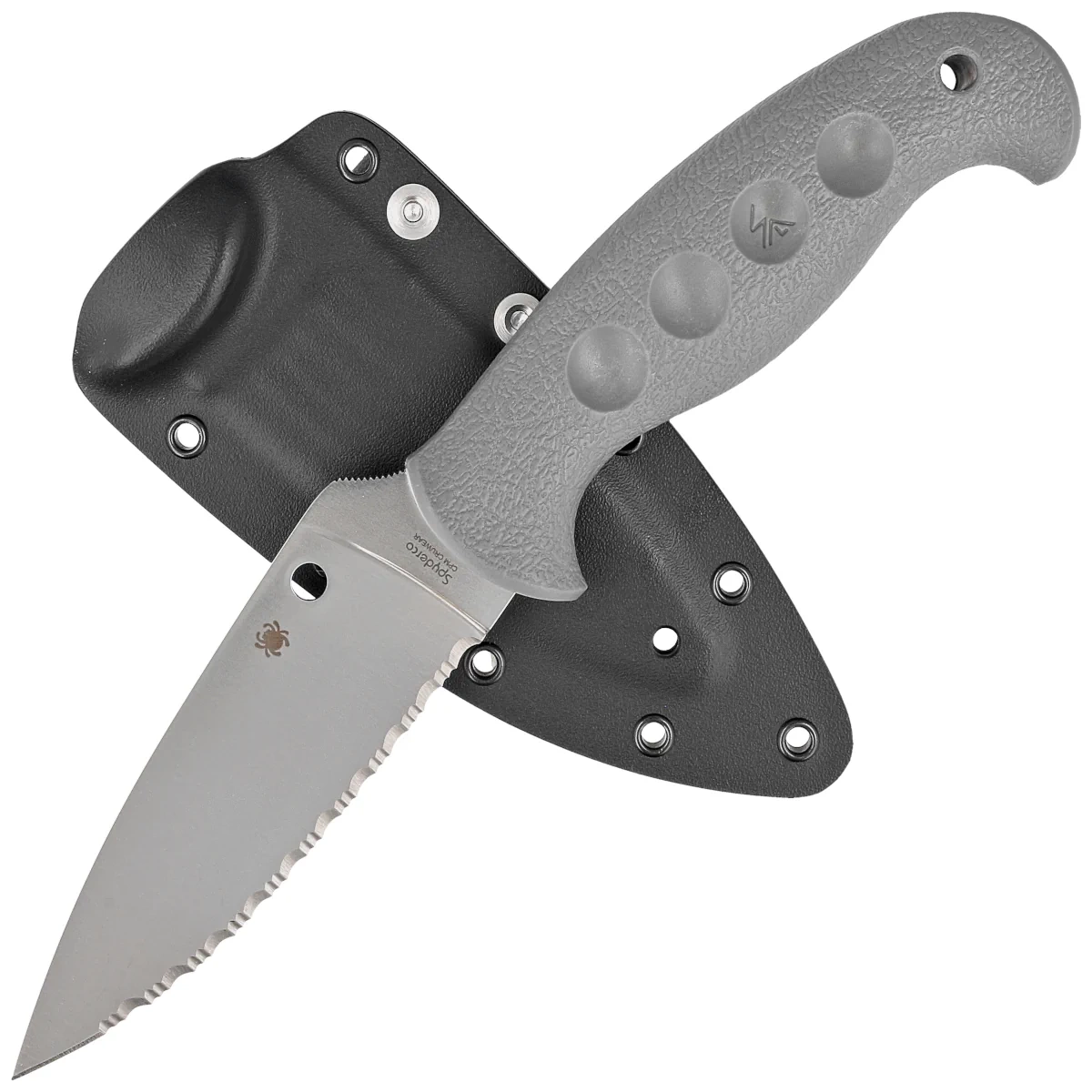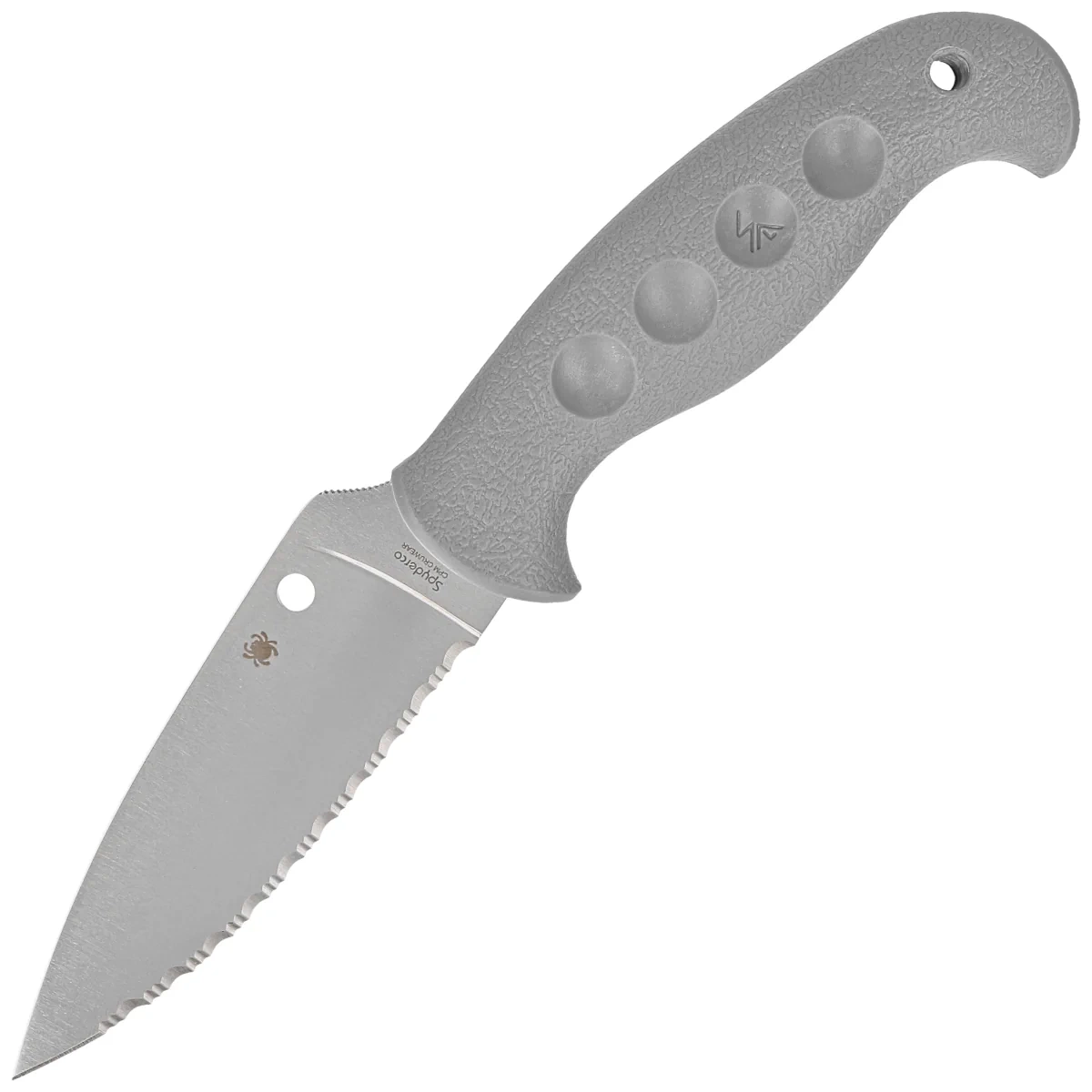 SpyderEdge - (Spyderco patent) new serrated Spyder blade with improved edge geometry, consists of alternating one large and two small teeth known as two-step. This pattern increases the length of the cutting edge by up to 24% compared to a straight blade. Ideal for cutting hard materials, plastics and fibrous materials such as rope, belts, among others.