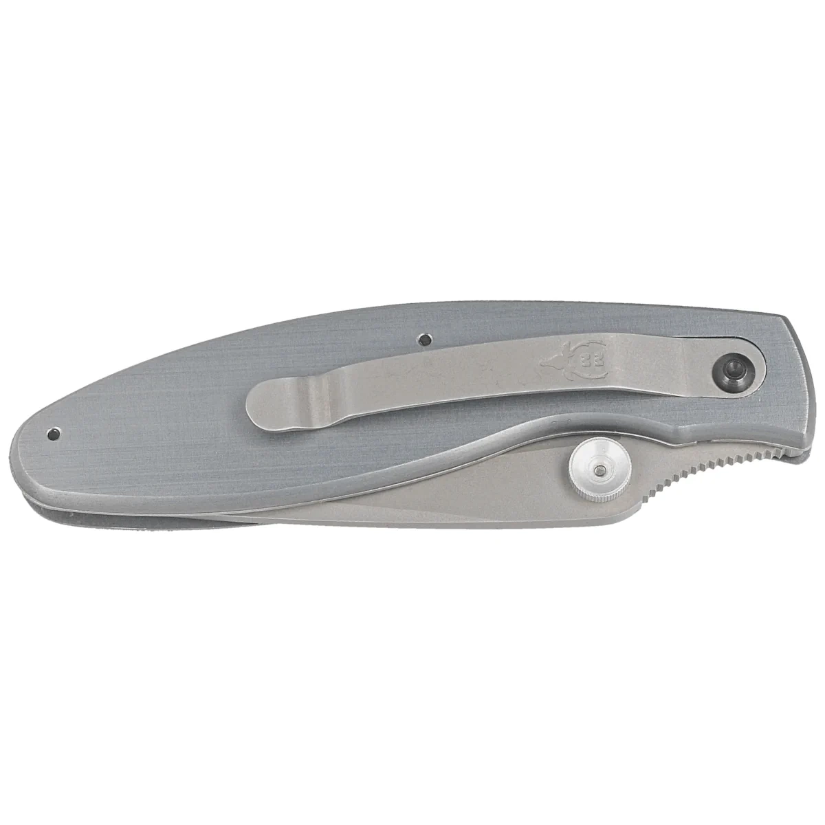 Handle - grips made of aluminum, practically indestructible metal insensitive to weather conditions, resistant to chemicals and mechanical damage. Micarta composite inlay in the back improves grip security. The massive backspacer to which the grips are attached guarantees the rigidity and strength of the entire structure.