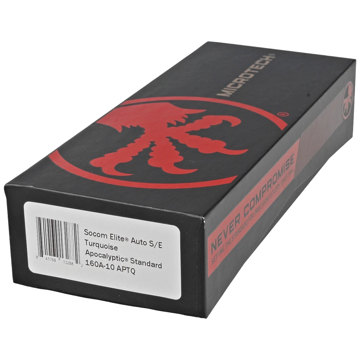- Socom Elite Auto S/E Turquoise Aluminum/3M, Apocalyptic tactical automatic knife designed to meet the most stringent requirements of US Army Special Forces operators. The finest materials, incredible durability!