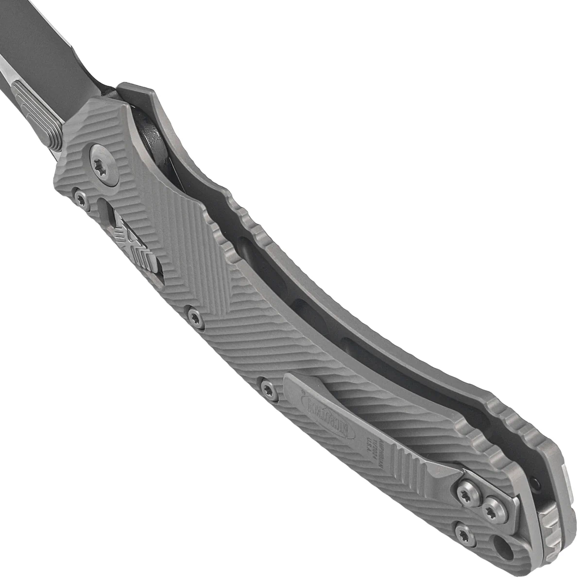 Handle - made with excellent precision in 3D technology on CNC milling machines, from brushed and polished 6061-T6 aluminum, for better grip covered with milled lines (Fluted). Wide locking slide with Microtech's characteristic stepped X structure. Both grips have been screwed together with a solid backspacer. A double-sided (right / left) titanium clip allows you to discreetly carry the knife in tip-up position. Above the clip a lanyard hole, a place for a safety or decorative cord.