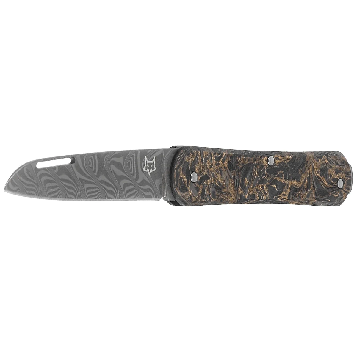 Fox Vulpis 130 LE No 128/250 Dark Matter Fat Carbon, Super Clean Damascus by Balbach Damast Pocket Knife (FX-VPDAM130 DMGO)