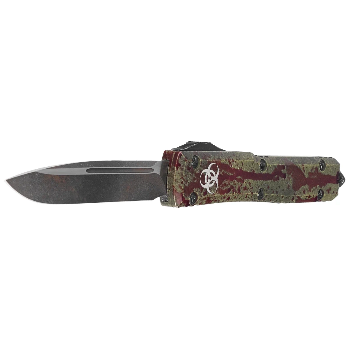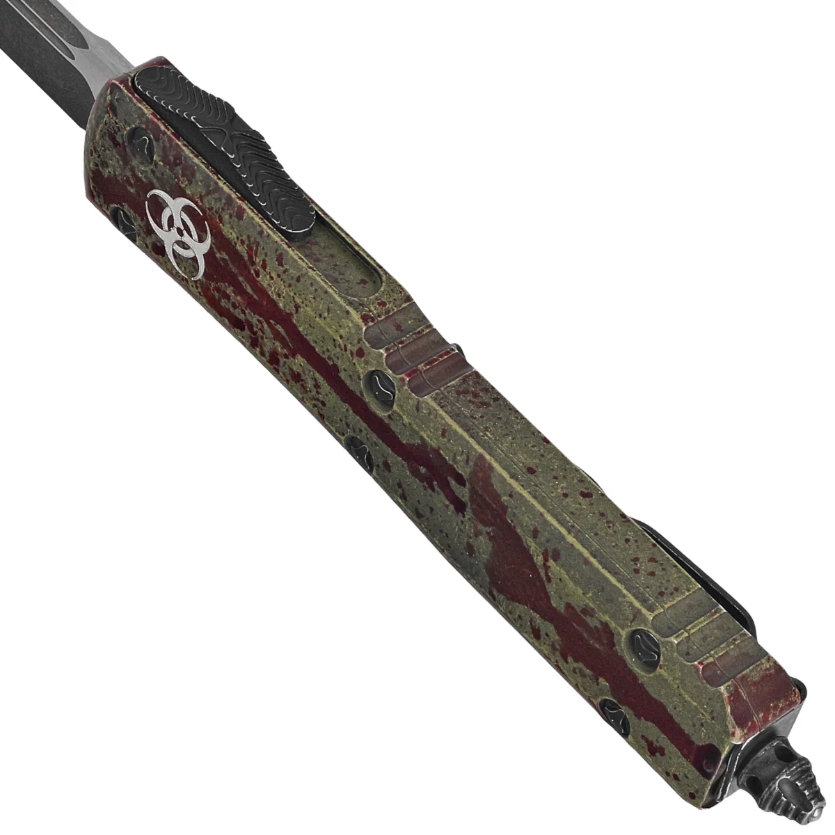 Ultratech S/E Signature Outbreak Aluminum, Outbreak is a full-size automatic OTF knife from the Ultratech Signature Series. This model stands out with its unique "Outbreak" design and a deeply engraved Biohazard symbol, the hallmark of the Outbreak series. Featuring a D/A (Double Action) mechanism, it allows for lightning-fast blade deployment and retraction with a simple thumb motion, making it an extremely practical tool in high-speed situations. Designed by Tony Marfione, founder of Microtech Knives.