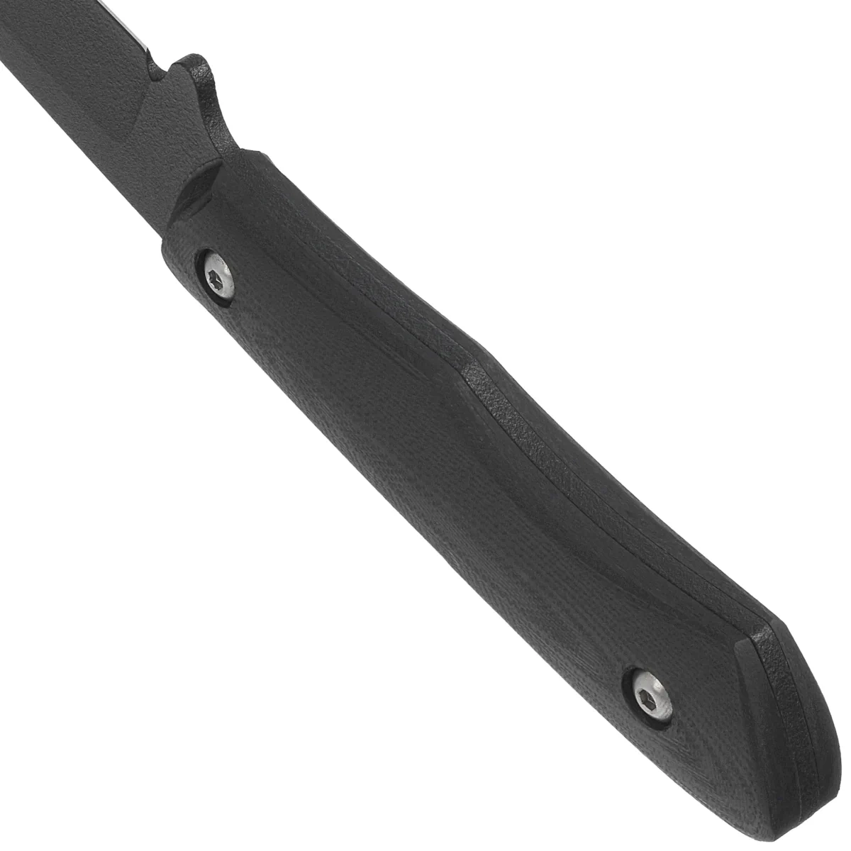 M10M Black G10, Black is a precision-crafted outdoor knife designed for reliability in any situation. The 1.4116S steel blade is characterized by increased corrosion resistance and excellent cutting edge retention. Thanks to the appropriate heat treatment, it retains optimal hardness, guaranteeing long-lasting sharpness. Handle made of G10 composite, known for its high resistance to moisture, impact and extreme temperatures, ensures a secure grip in all conditions. The ergonomic design increases user comfort and prevents hand fatigue. The full tang construction guarantees high durability and allows for intensive use. Its robustness and compact design make it a versatile tool that can meet any challenge.