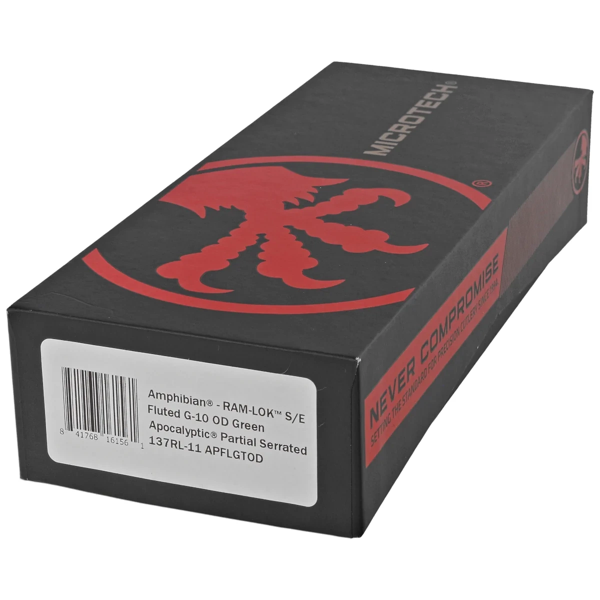- Amphibian Ram-Lok S/E Fluted OD Green G10, Apocalyptic P/S Re-edition of the folding knife with intuitive RAM-Lock. Excellent M390MK blade steel, a collaboration between Microtech and Bohler engineers. Ergonomic handle. Designed by Anthony Marfione