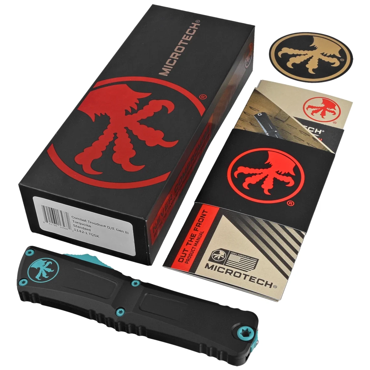 Microtech Combat Troodon D/E Gen III OTF Knife Black Aluminum, Turquoise M390MK by Tony Marfione (1142-1TQSK)