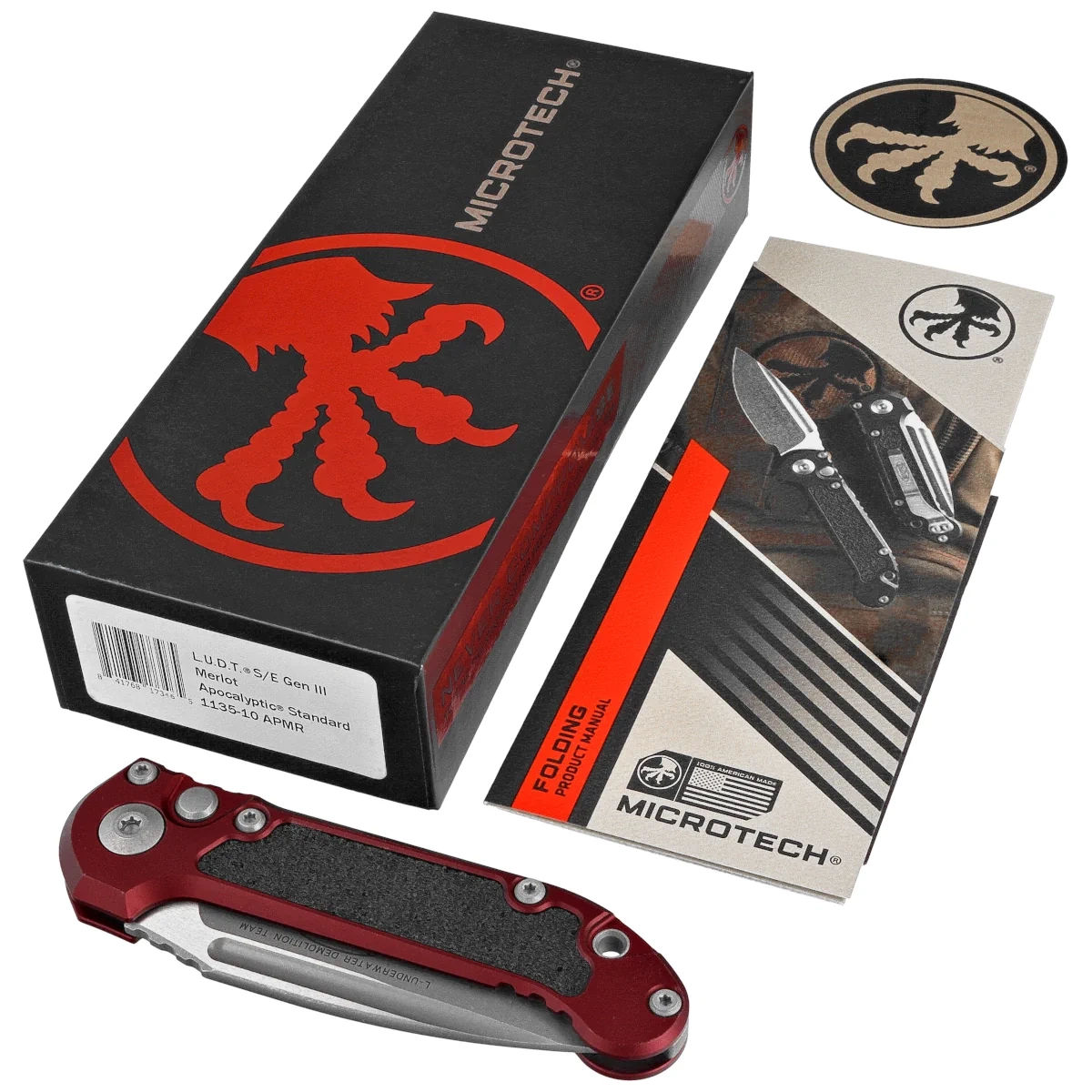 Microtech LUDT Gen III S/E Automatic Knife Merlot Aluminum, Apocalyptic M390MK by Tony Marfione (1135-10APMR)