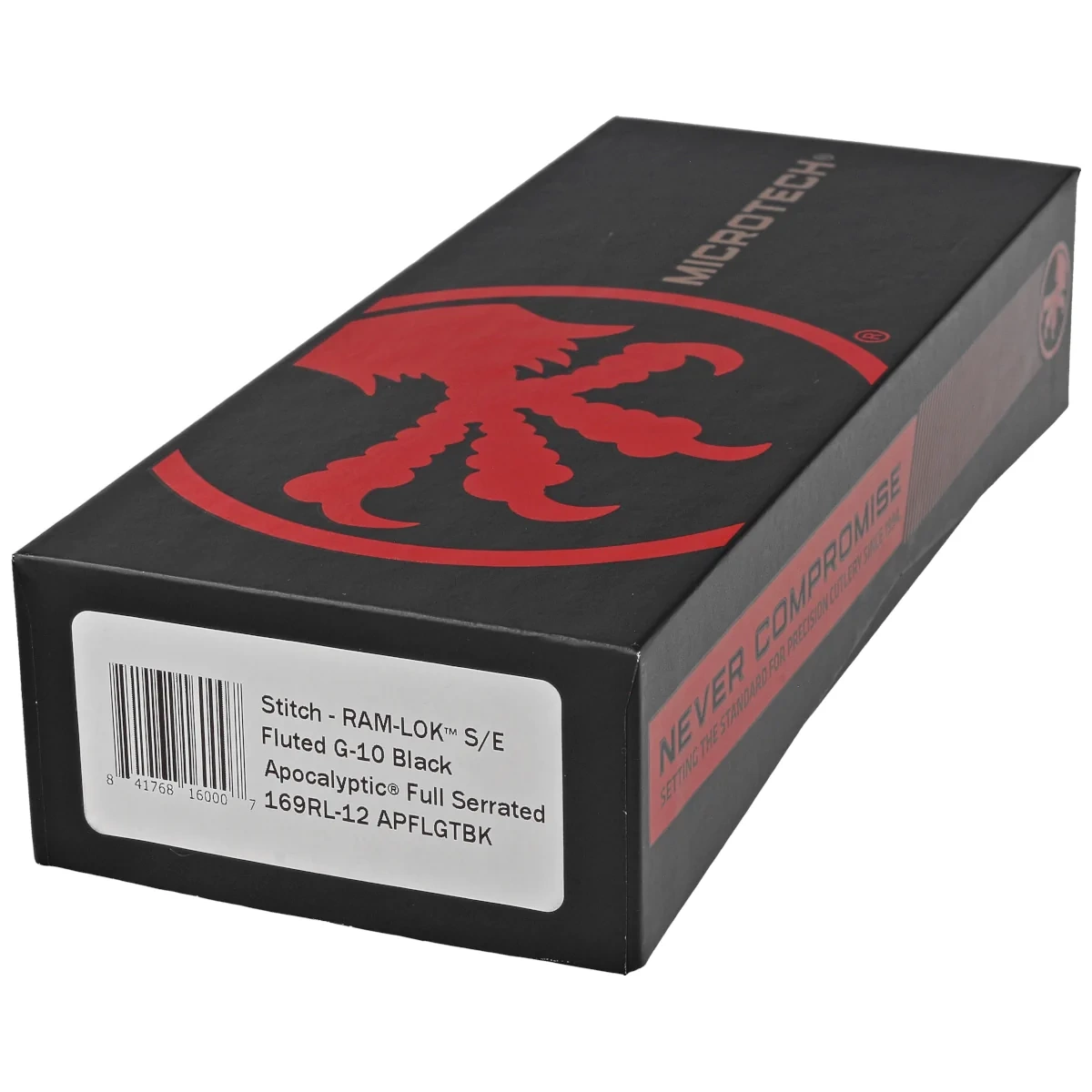 - Stitch Ram-Lok S/E Black Fluted G10, Apocalyptic F/S. The manual version of the popular design by Sebastiaan Berenji from Bork Blades and Microtech. A wide, harpoon-shaped blade, excellent materials and the legendary workmanship of Microtech Knives.