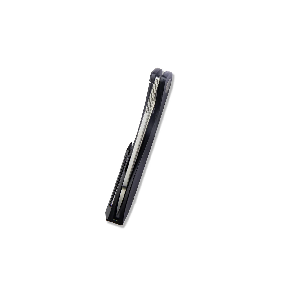 Handle - profiled grips made of titanium 6AL4V. The whole is screwed to a solid backspacer, also made of titanium. The simple, solid construction ensures many years of use. The pivot axis is adorned with a titanium cap (Pivot Cap) in a contrasting color. A single position (right) titanium deep carry clip allows you to carry the knife discreetly in your pocket in a tip-up position (with the tip of the blade up). In the back of the backspacer there is a hidden place to thread a safety or decorative cord.