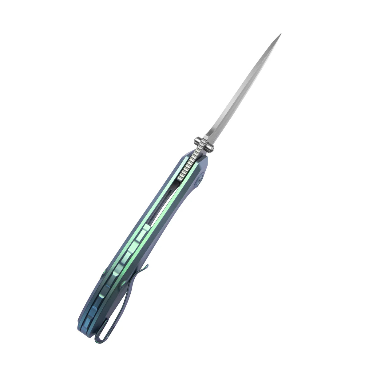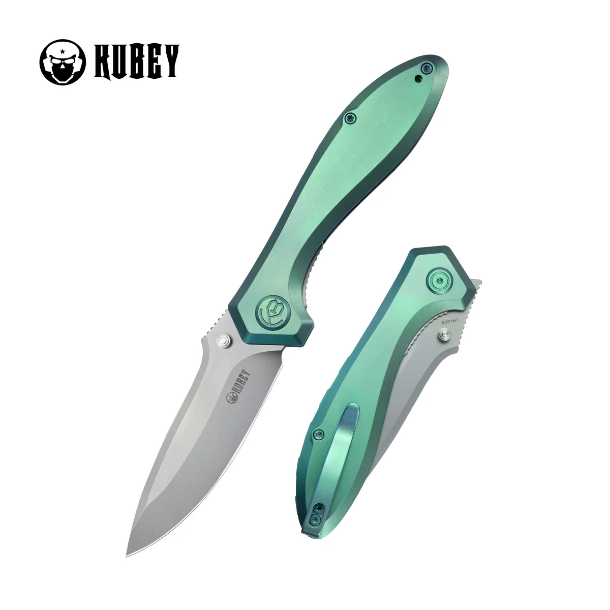 Kubey Ruckus Knife Green Titanium, Beadblasted CPM 20CV by Sherif Manganas (KB314S)