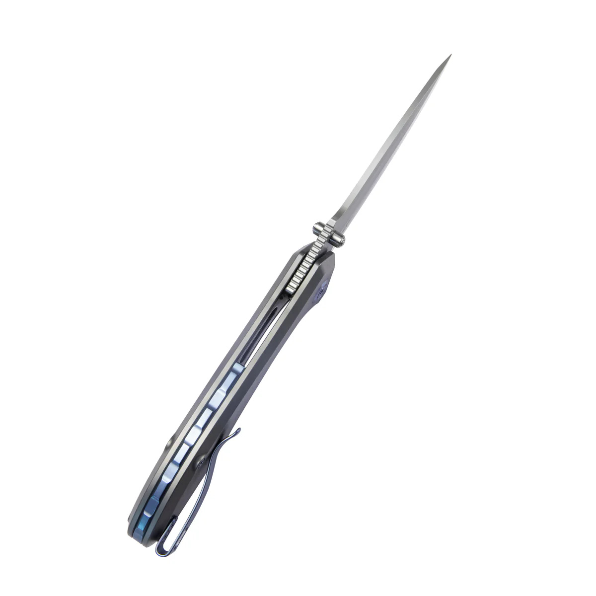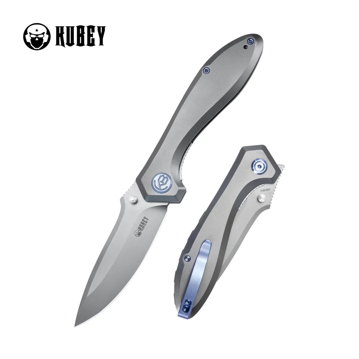Kubey Ruckus Knife Gray Titanium, Beadblasted CPM 20CV by Sherif Manganas (KB314Q)