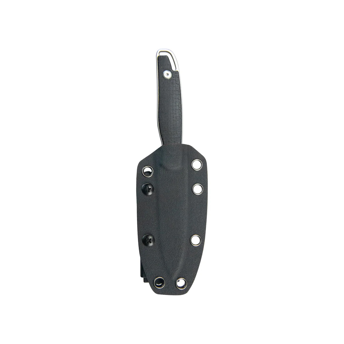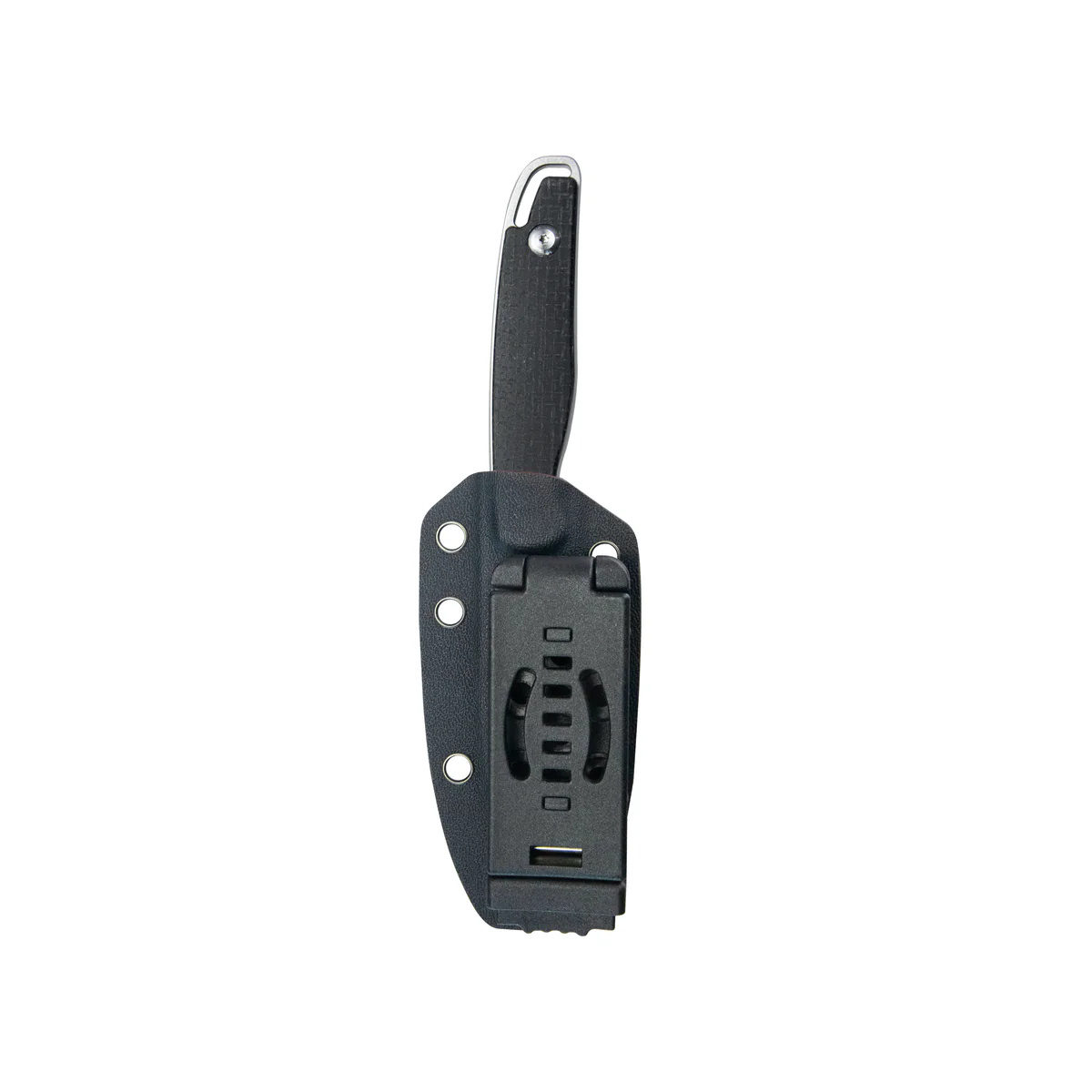 Dust Devil Black Micarta, Beadblasted compact knife designed by the renowned creator K.C. Spiron. Made in a full tang design, ensuring durability with intensive use. Blade made of Sandvik 14C28N steel, vacuum hardened and frozen. This ensures that the knife stays sharp for a long time and is resistant to damage. Handle grips are made of durable Micarta composite with a rough texture, ensuring a secure grip even with wet hands. The Kydex sheath is carefully molded and equipped with a reliable fastening, allowing the knife to be comfortably carried in various positions. This knife is appreciated by both tactical knife enthusiasts and users looking for a solid tool for everyday tasks. The whole is characterized by an elegant, discreet design and high functionality.