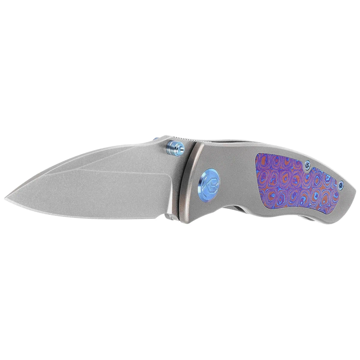 • Vertigo Gray Titanium/Timascus, Stonewashed handy EDC folder designed by Peter Carey. Comfortable titanium handle with timascus inlays, blade made of well-developed CPM S35VN steel. Secure frame lock. An excellent tool!