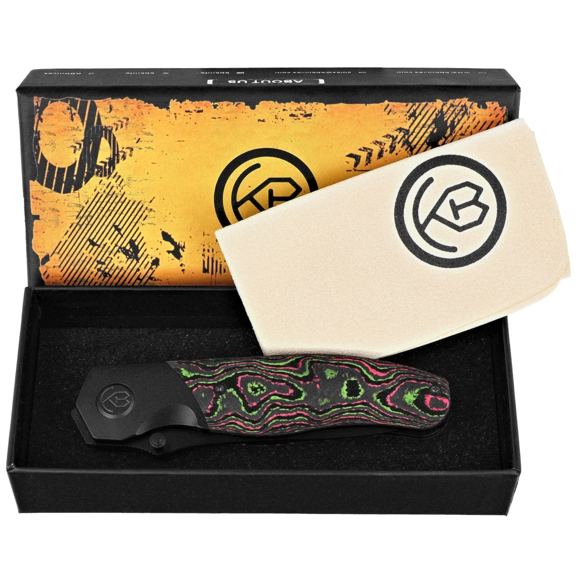 Kubey KB Knives Velvet Snake Black DLC Titanium/Watermelon Sugar CamoCarbon, Black DLC M390 by Bastard Knives (KB266C)
