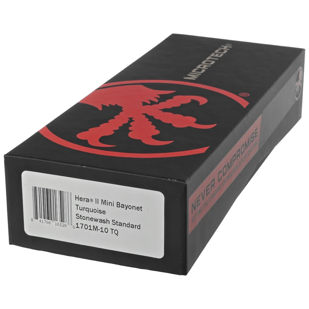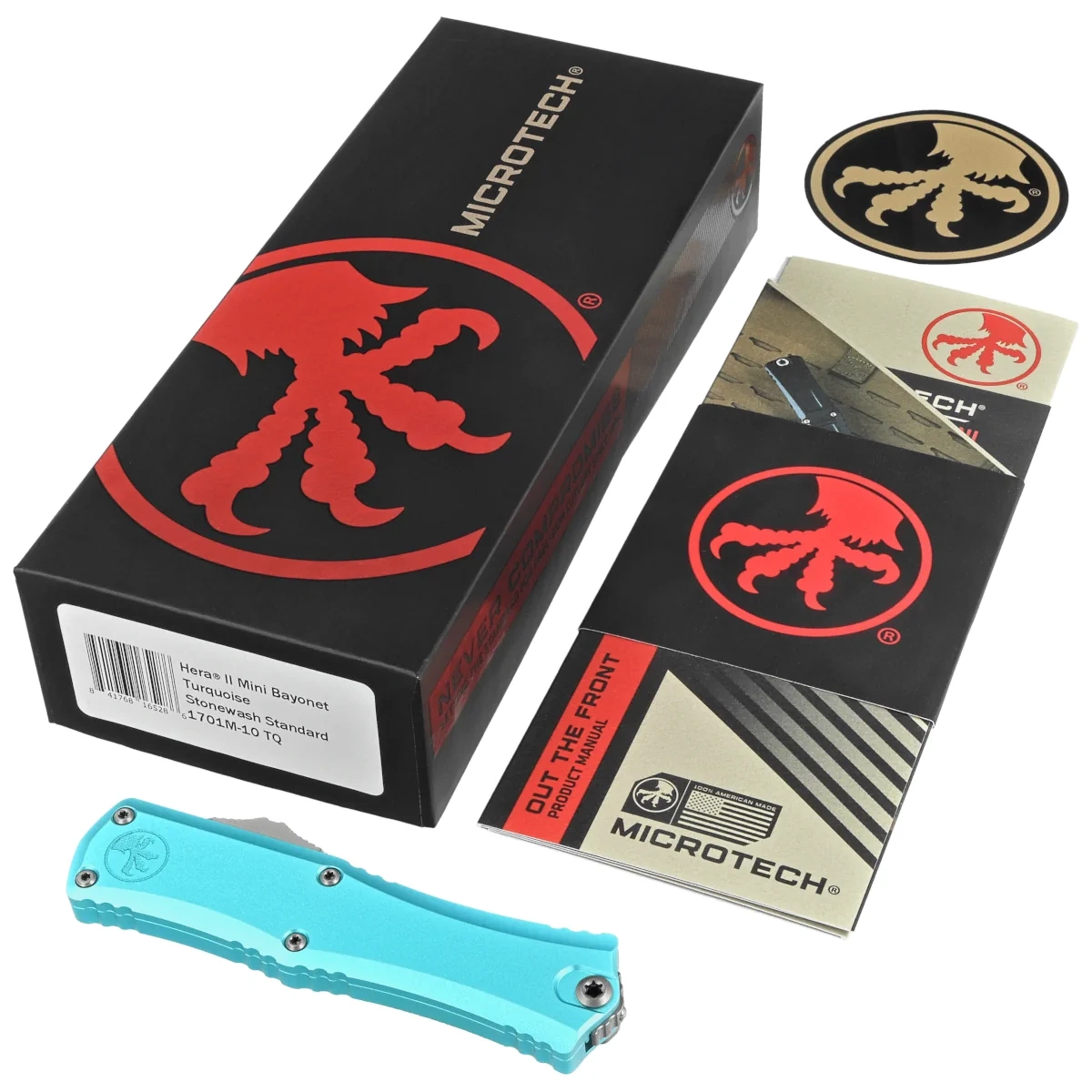 - Hera 2 Mini Bayonet Turquoise Aluminum, Stonewashed compact version of one of the best OTF automatic knives. Convenient to carry, while maintaining the power of larger models. Designed by Anthony Marfione, owner of Microtech Knives.