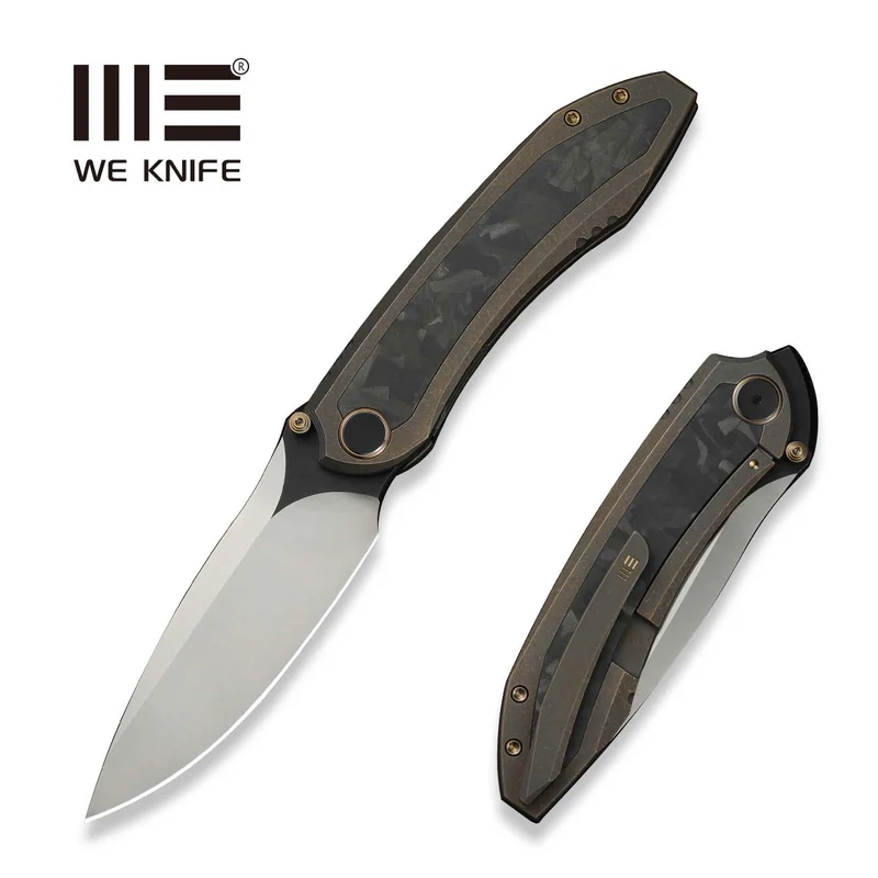WE Knife Winsome Bronze Titanium/Marble Carbon Fiber, Satin/Black Stonewashed M390 (WE23092-3)
